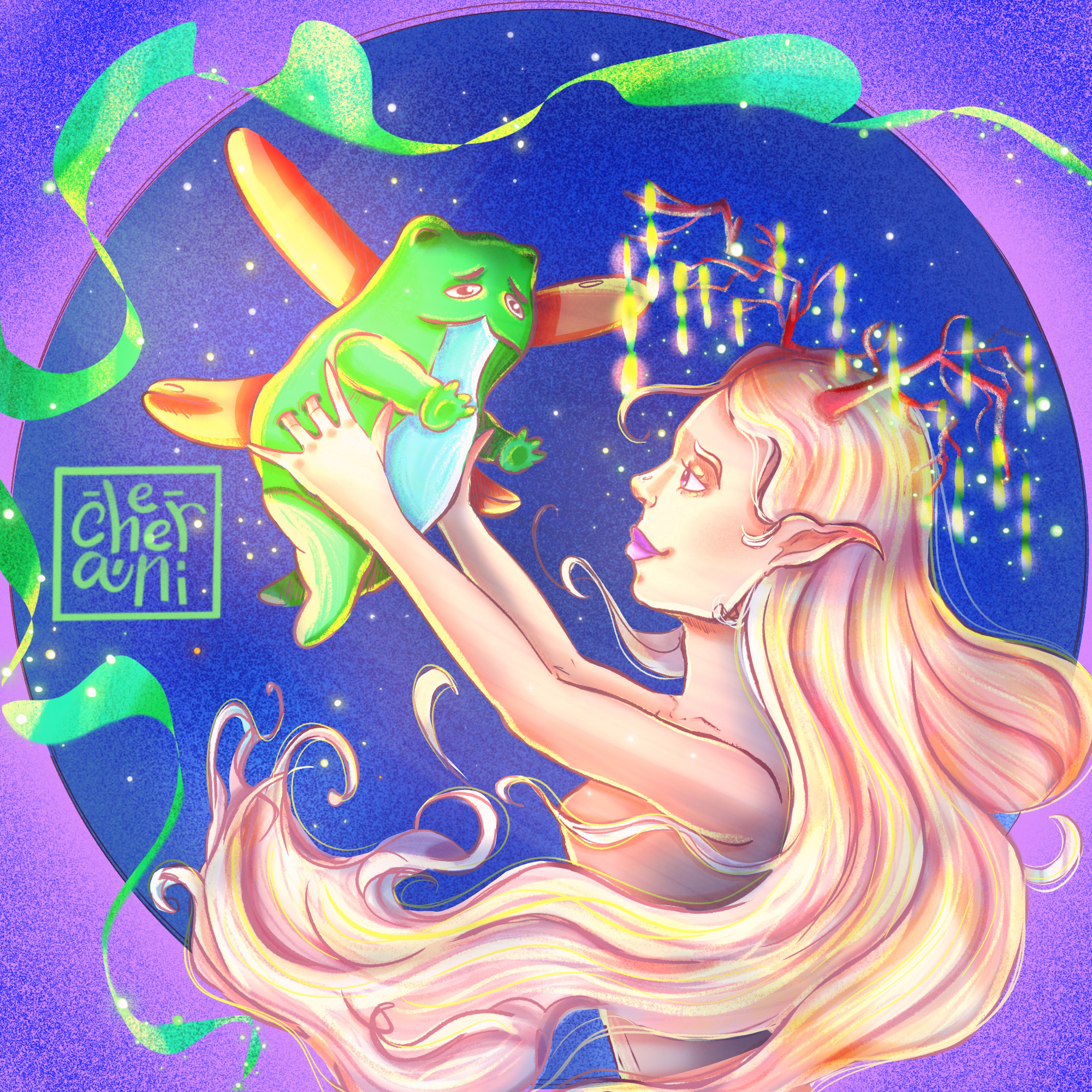 An illustration made in the technique of digital painting, combining elements of fantasy and portrait. The key task was to create an image that balances between tenderness and magical power