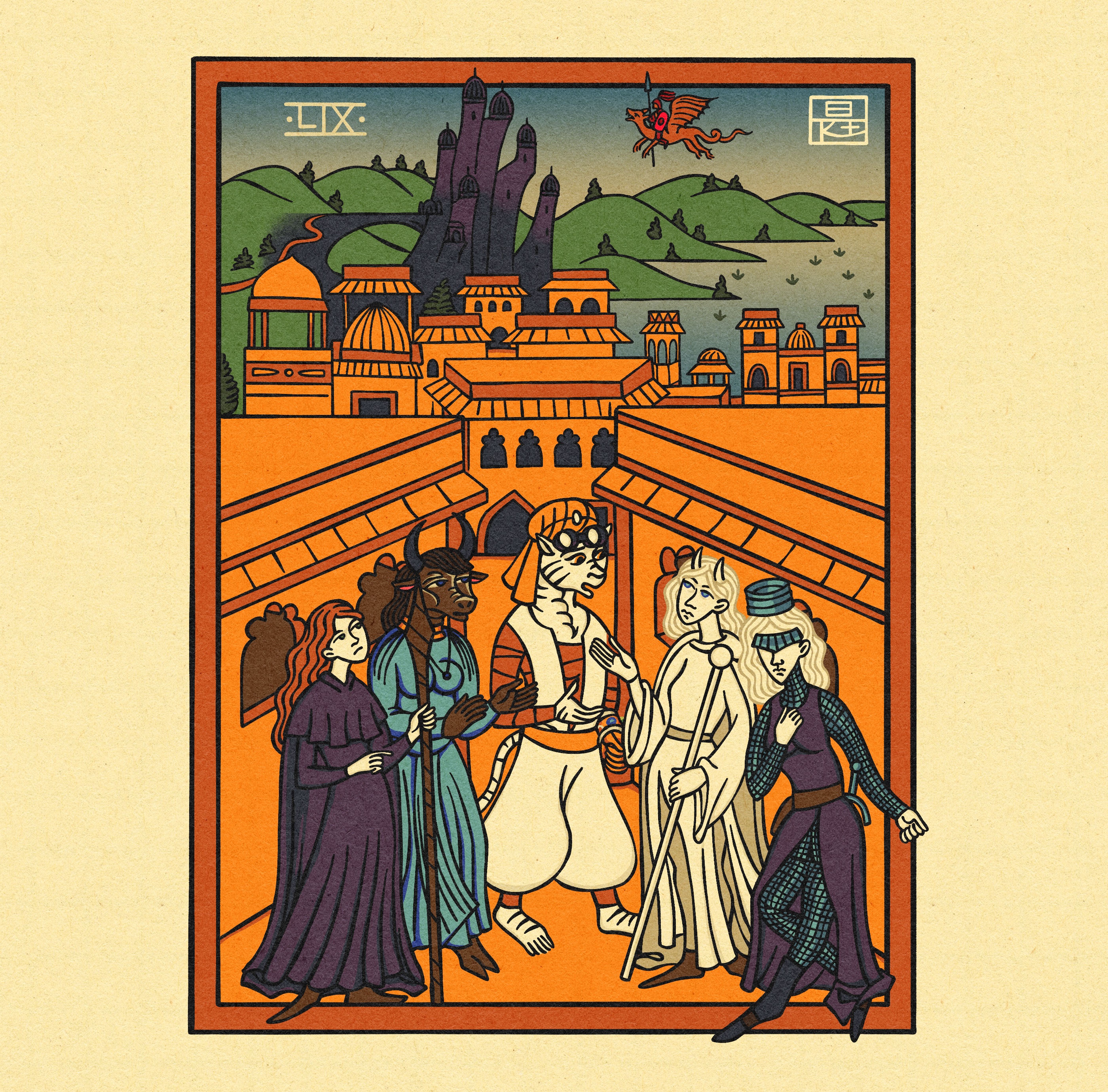 An illustration for a D&D game in the medieval illuminated manuscript style but it's digital №59. Personal project
