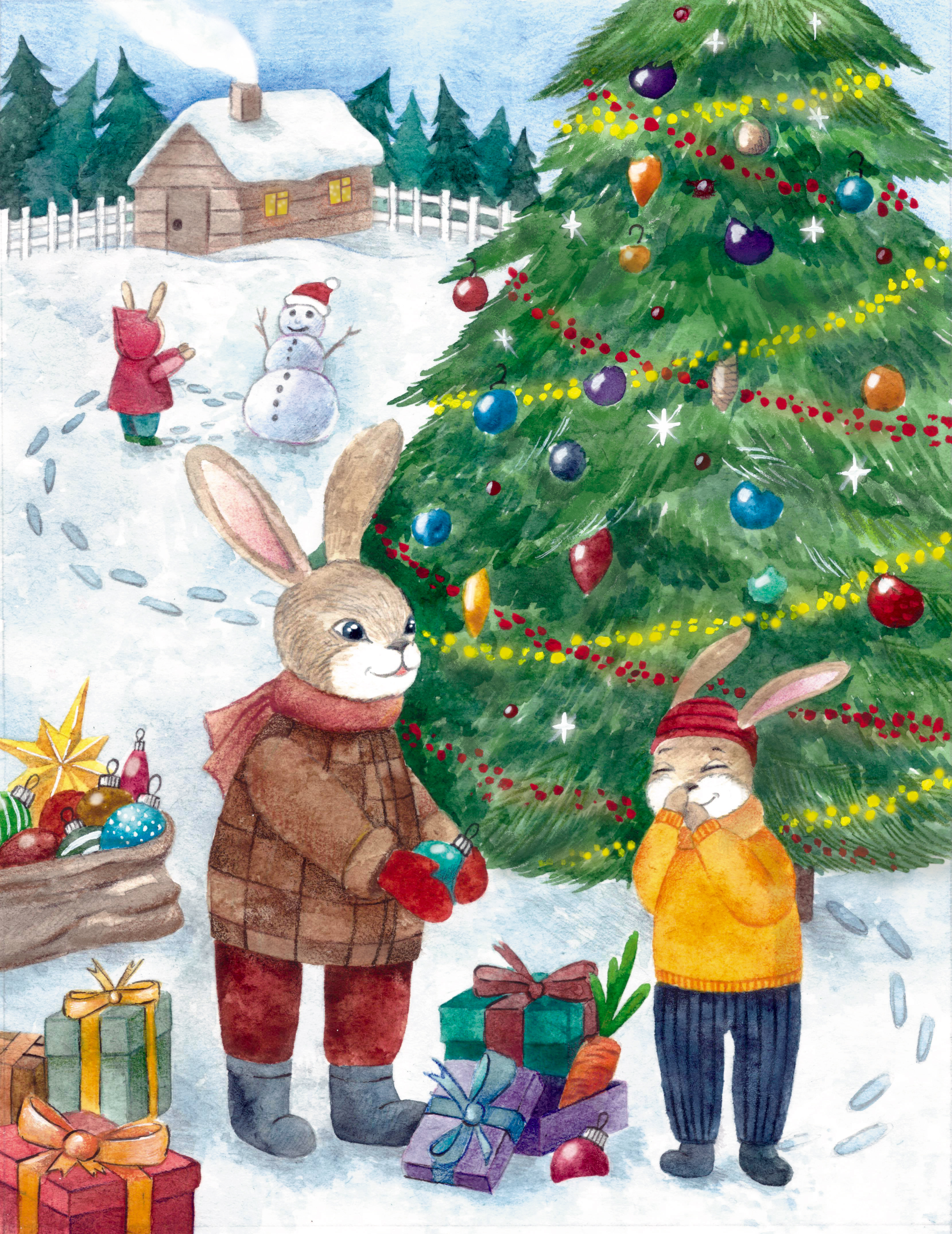 я сначала не поняла, а потом как поняла!)))) зайка стащил морковку со снеговика и положил в подарок 😁 здоровско как!