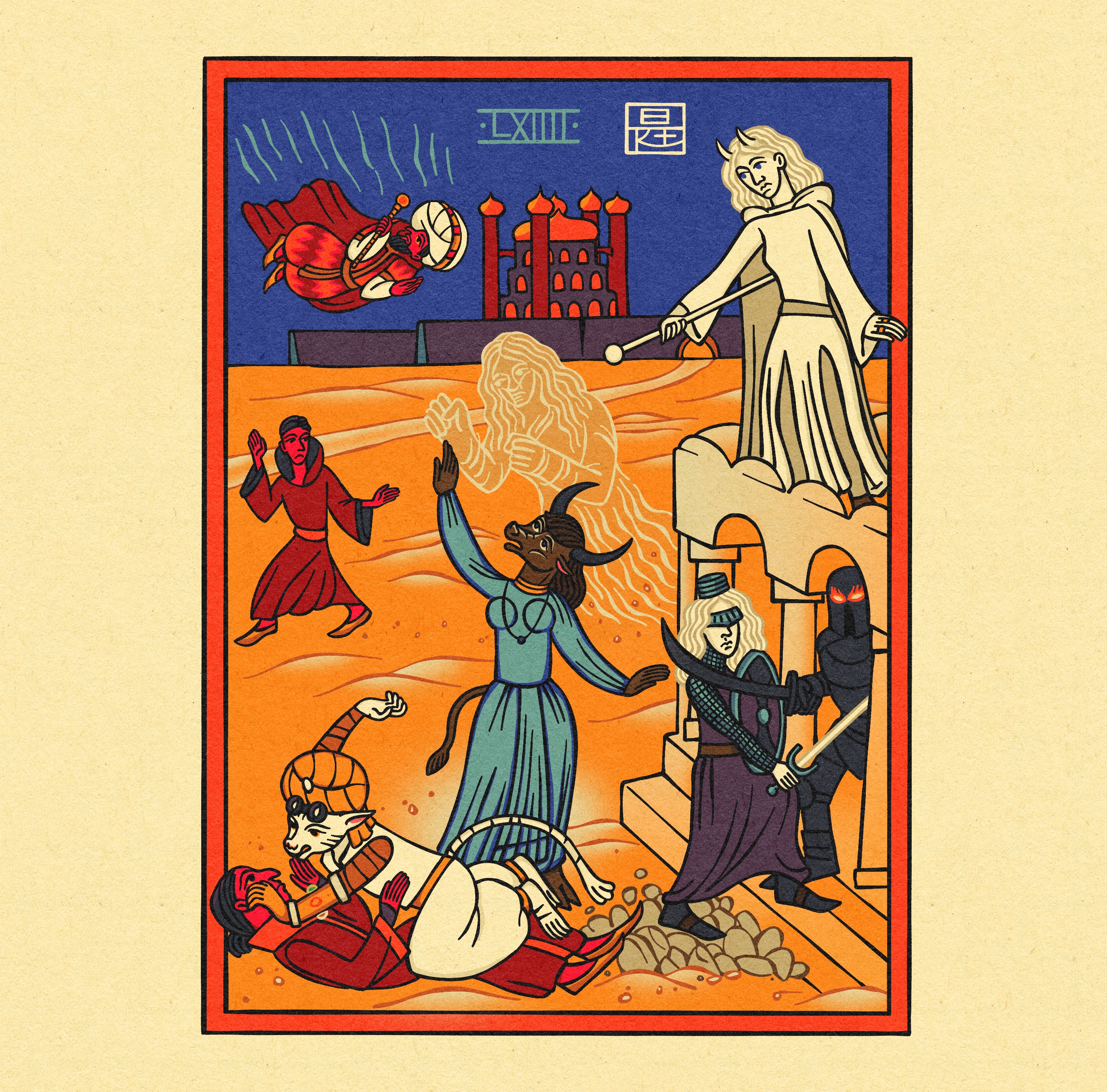 An illustration for a D&D game in the medieval illuminated manuscript style but it's digital №64. Personal project
