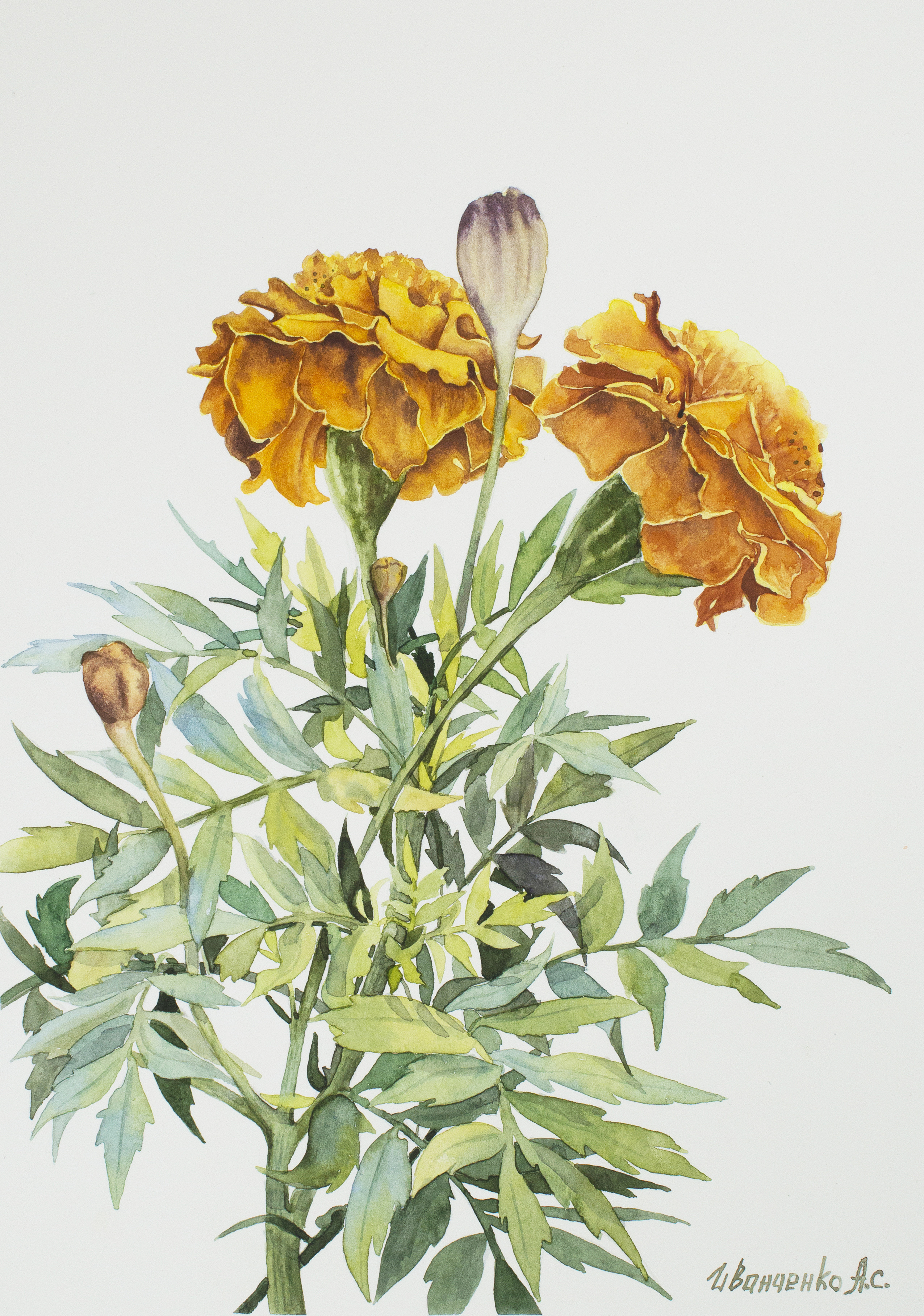 Акварель. Бархатцы. Ботаника