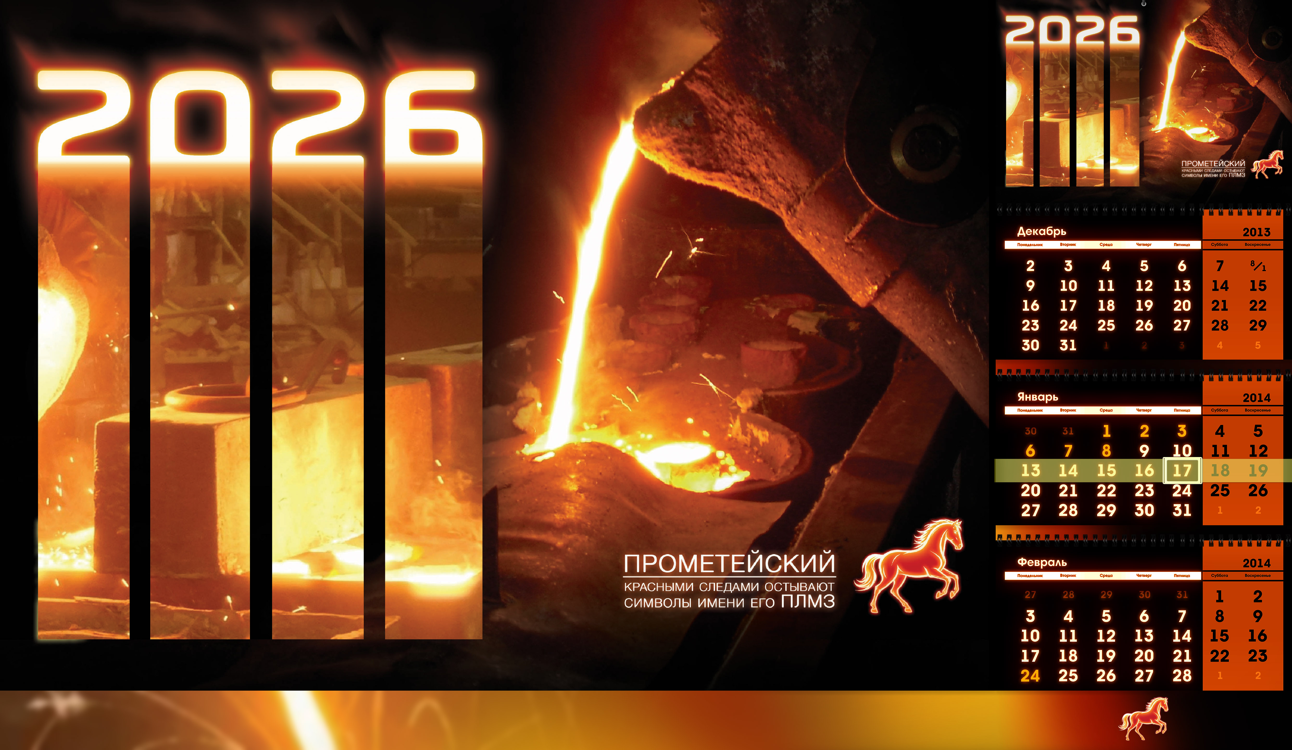 КАЛЕНДАРЬ 2026 трио, концепт идеи календаря для литейно-механического завода "ПЛМЗ ПРОМЕТЕЙСКИЙ"