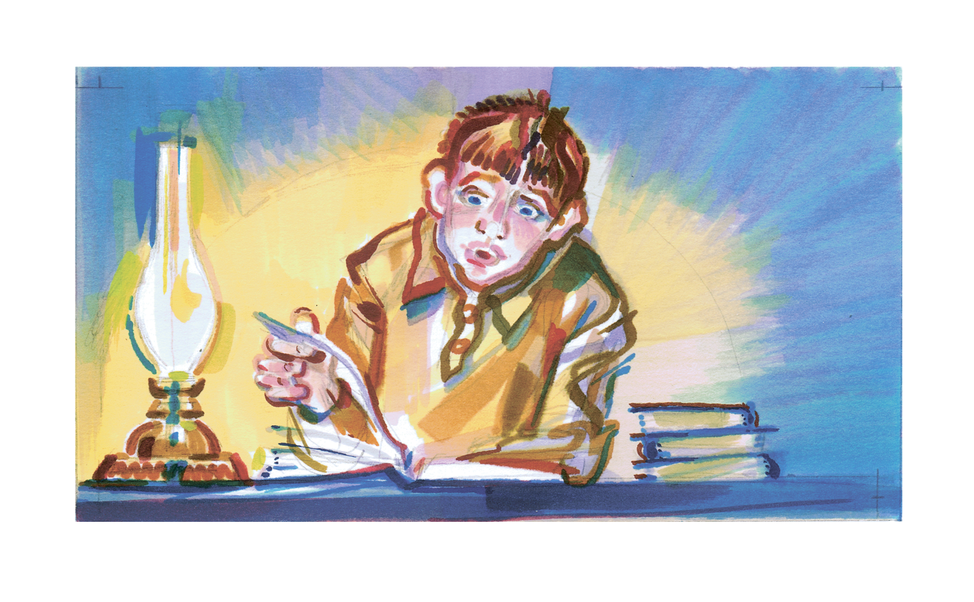 Collection of children's stories by Maria Panisheva "A Star for Emma". Trigger illustration for the story "In Love with the German Language. Scout Nikolai Kuznetsov". 2025. Paper, colored markers.