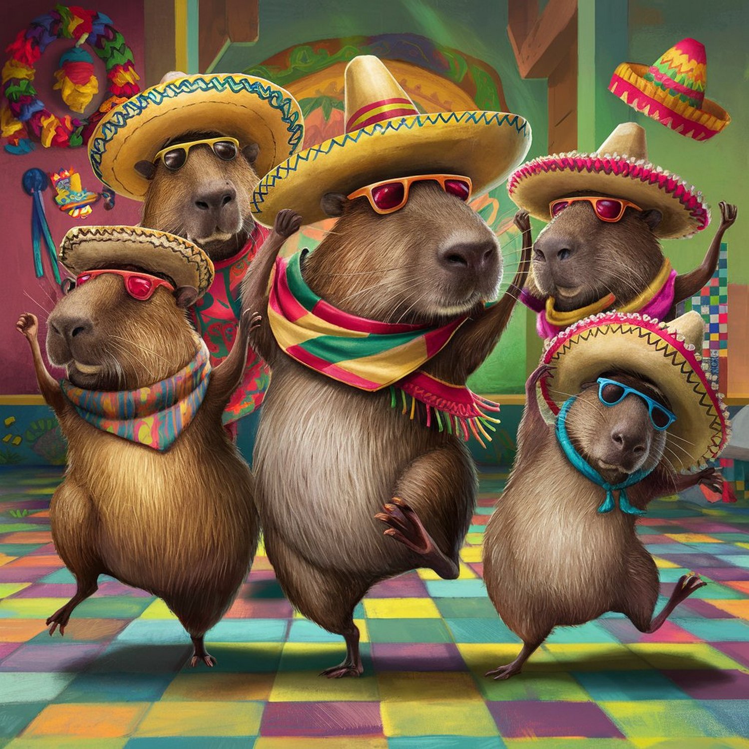 Happy Capybaras Dancing a Mexican Dance