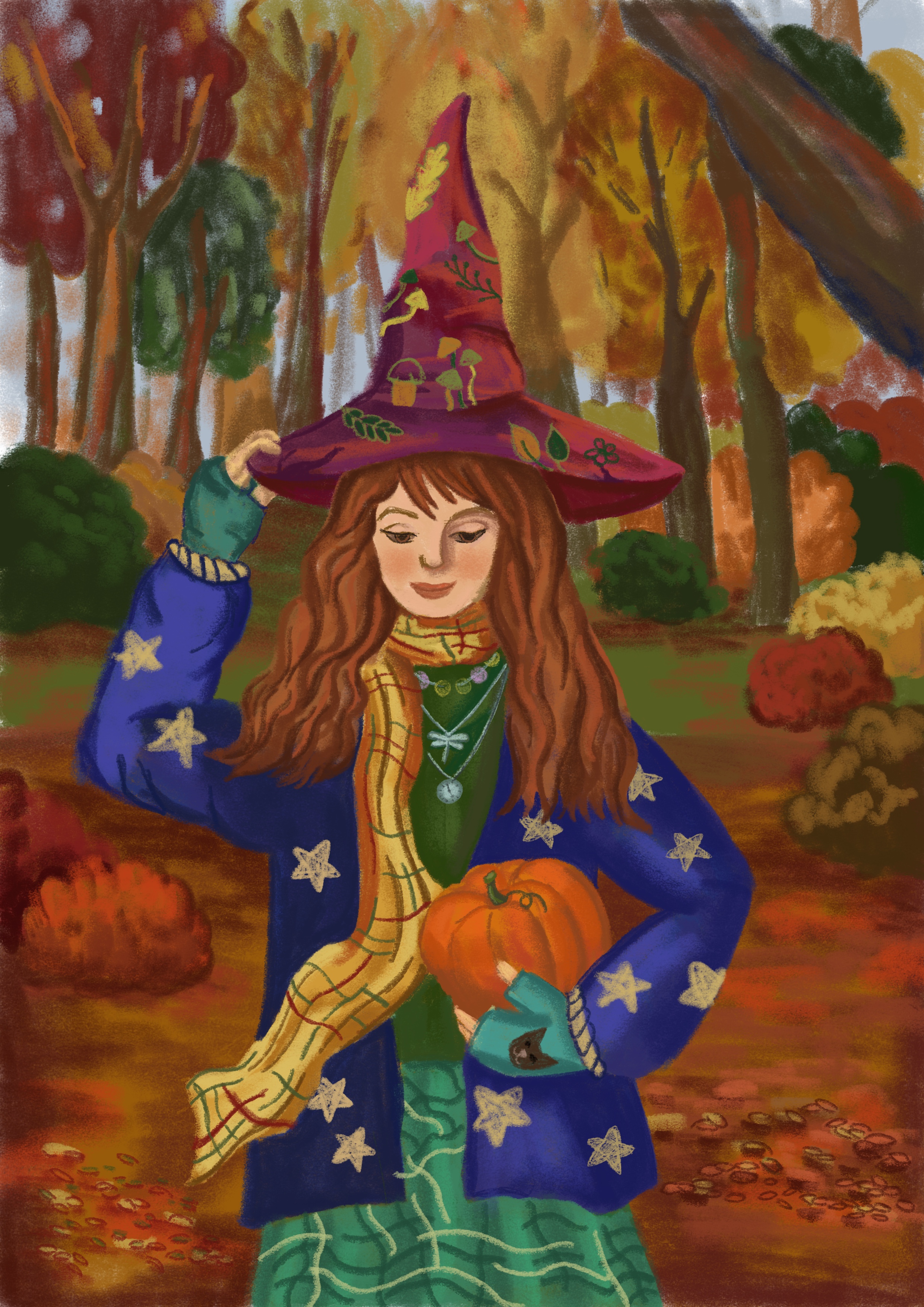 Illustration of a girl in autumn, the idea was taken from a reference