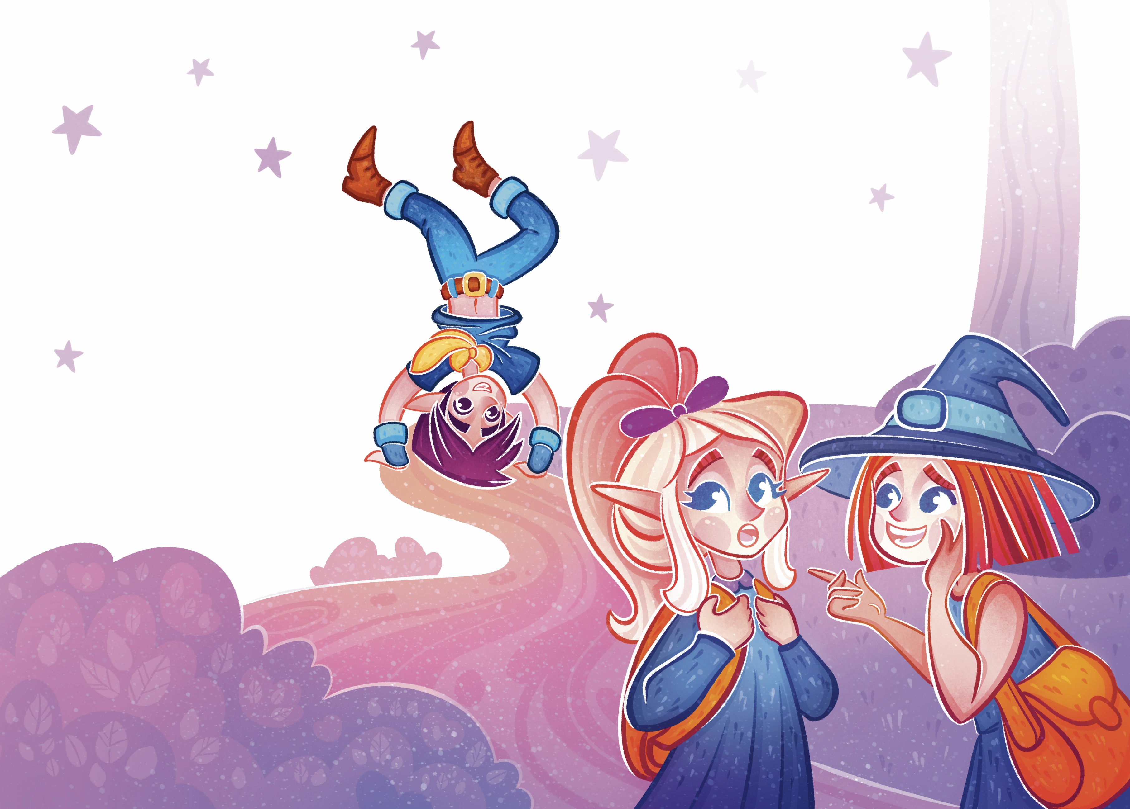 The boy constantly skips school. Instead, he walks only on his hands. Illustration for a children's book