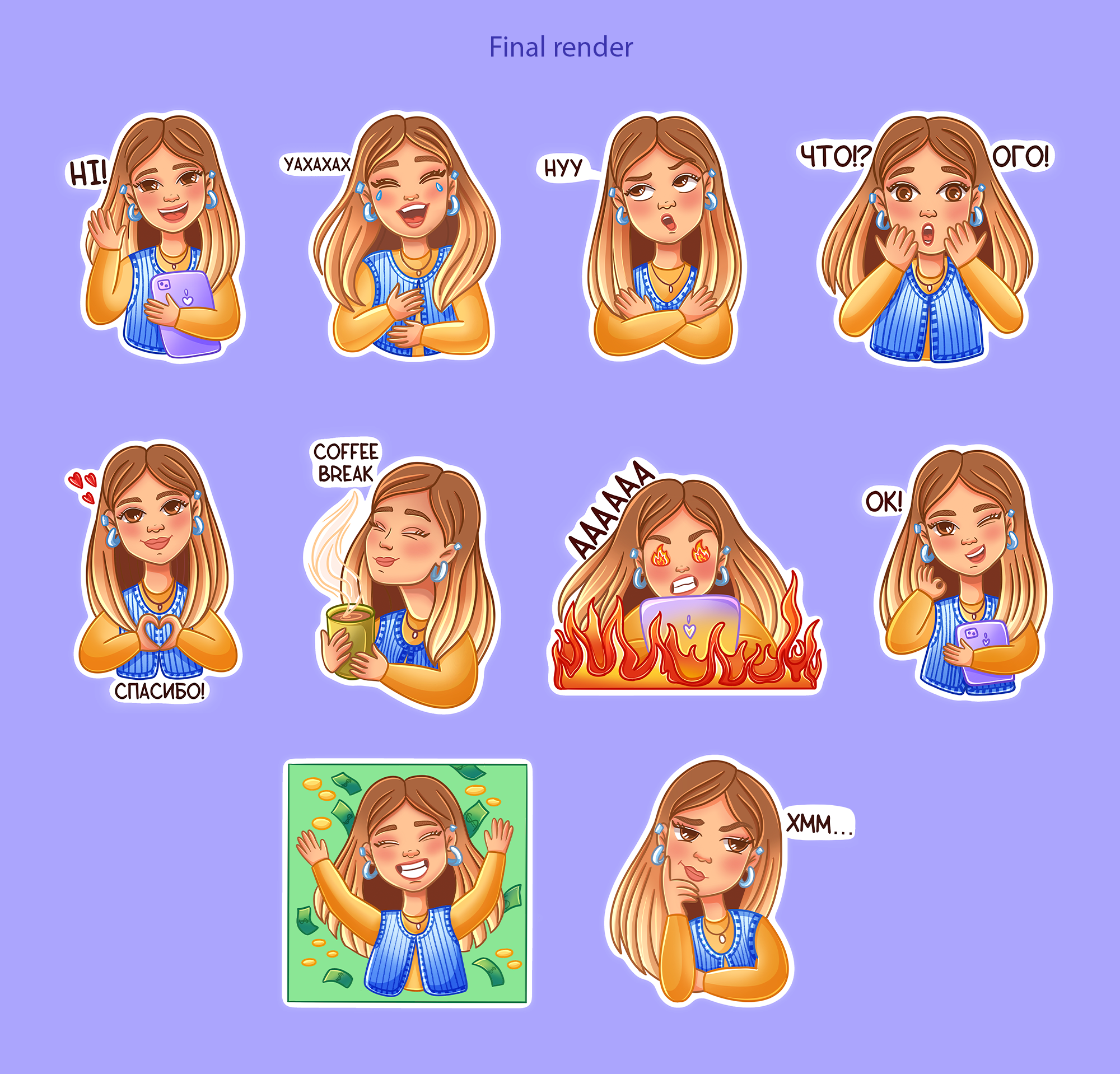 Creating custom stickers for the illustrator. Can be used in messengers and in print.