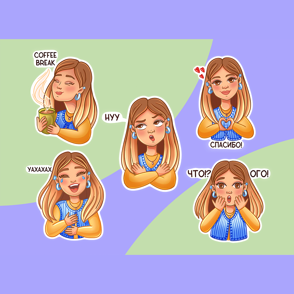 Creating custom stickers for the illustrator. Can be used in messengers and in print.