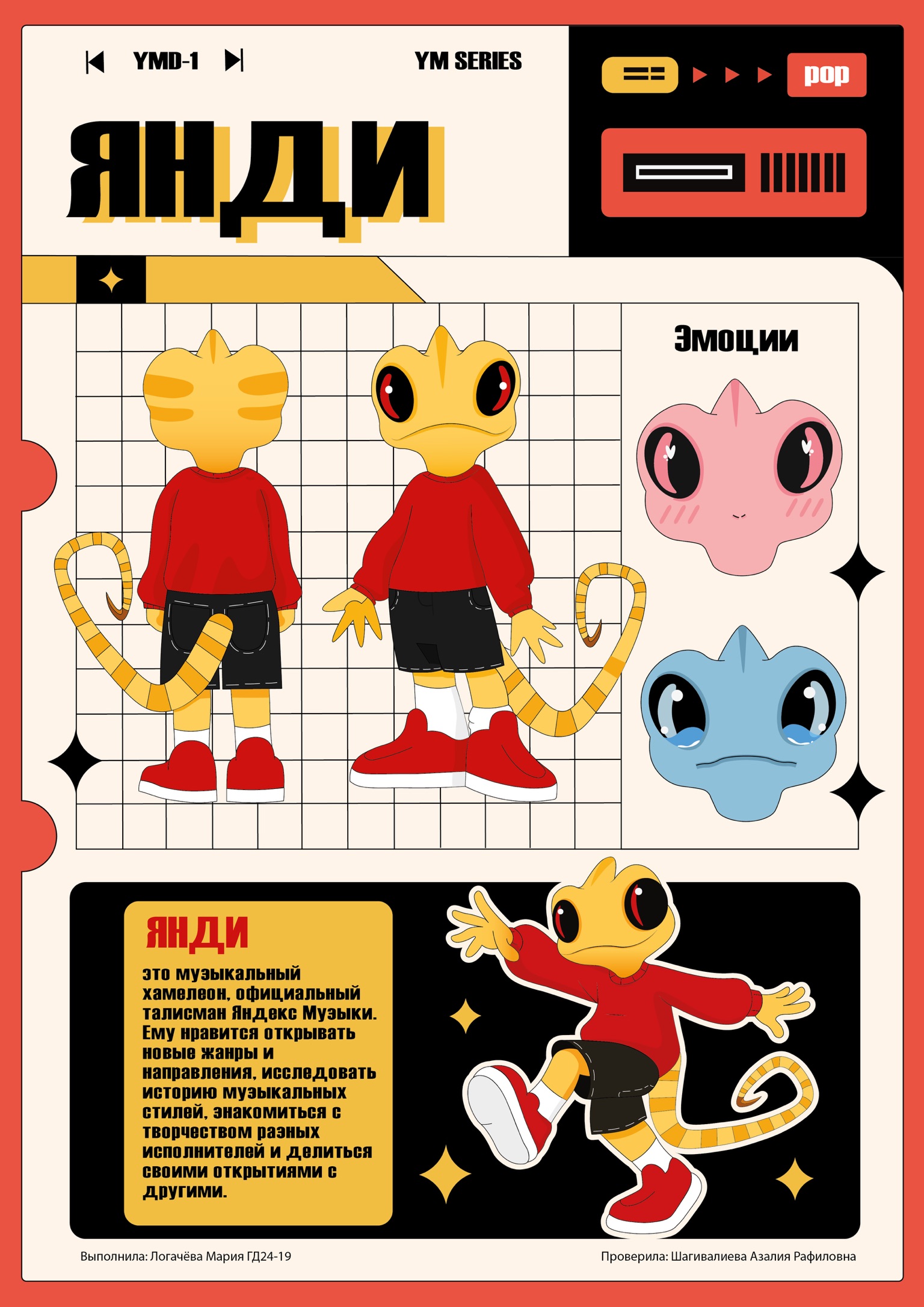 Маскот персонаж хамелеон Yandi для Яндекс Музыки.