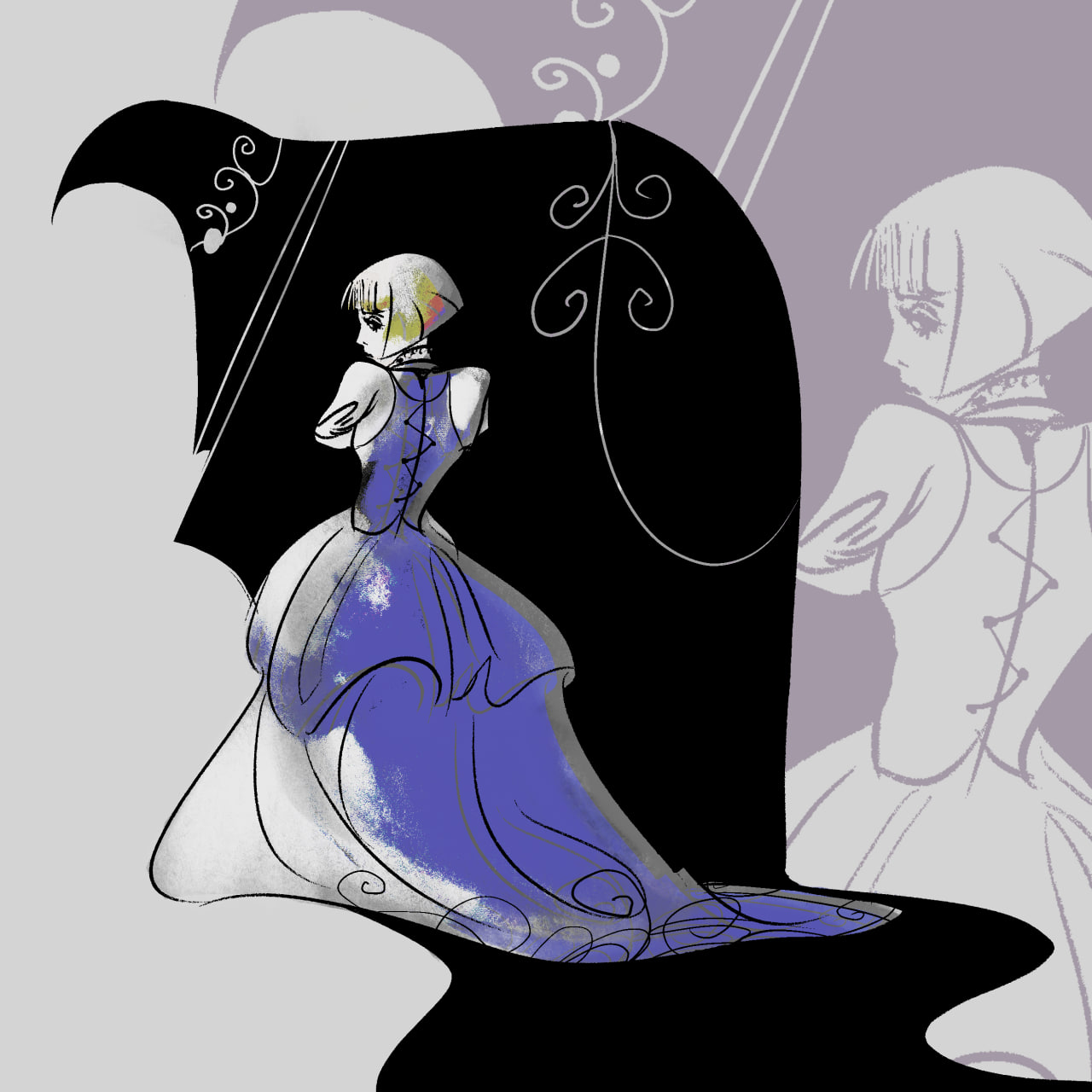 The concept - a young woman, haunted by a curse which lives off her emotions and protects her.
