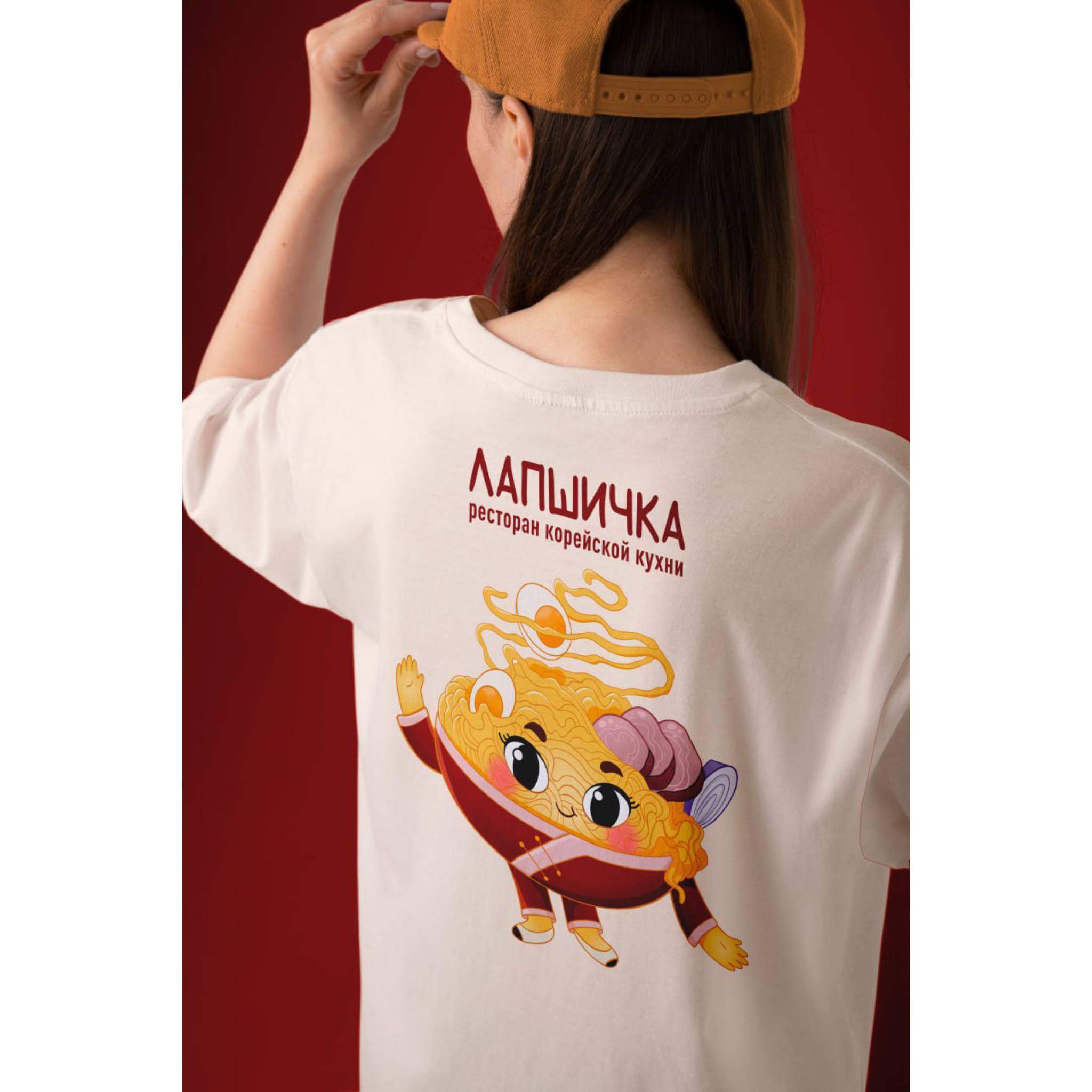 Noodles brand character t-shirt for Korean cafe with a graphic
