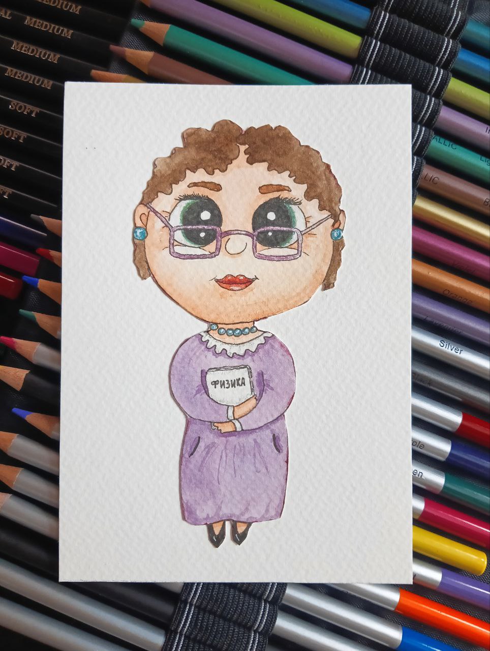 Мультяшный персонаж "учитель", акварельный скетч.