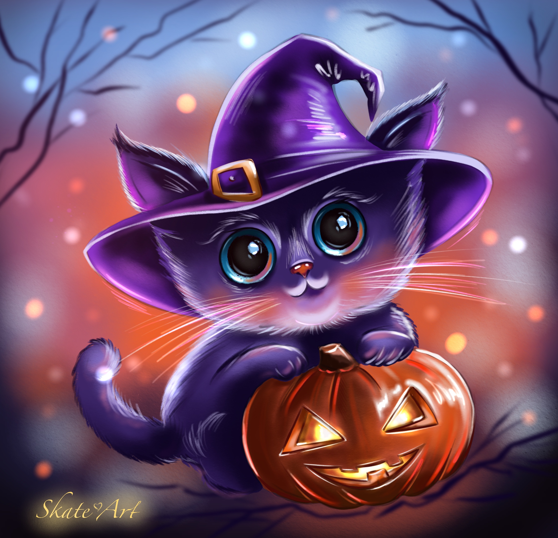 Cat and Pumpkin for Halloween, illustration, Procreate