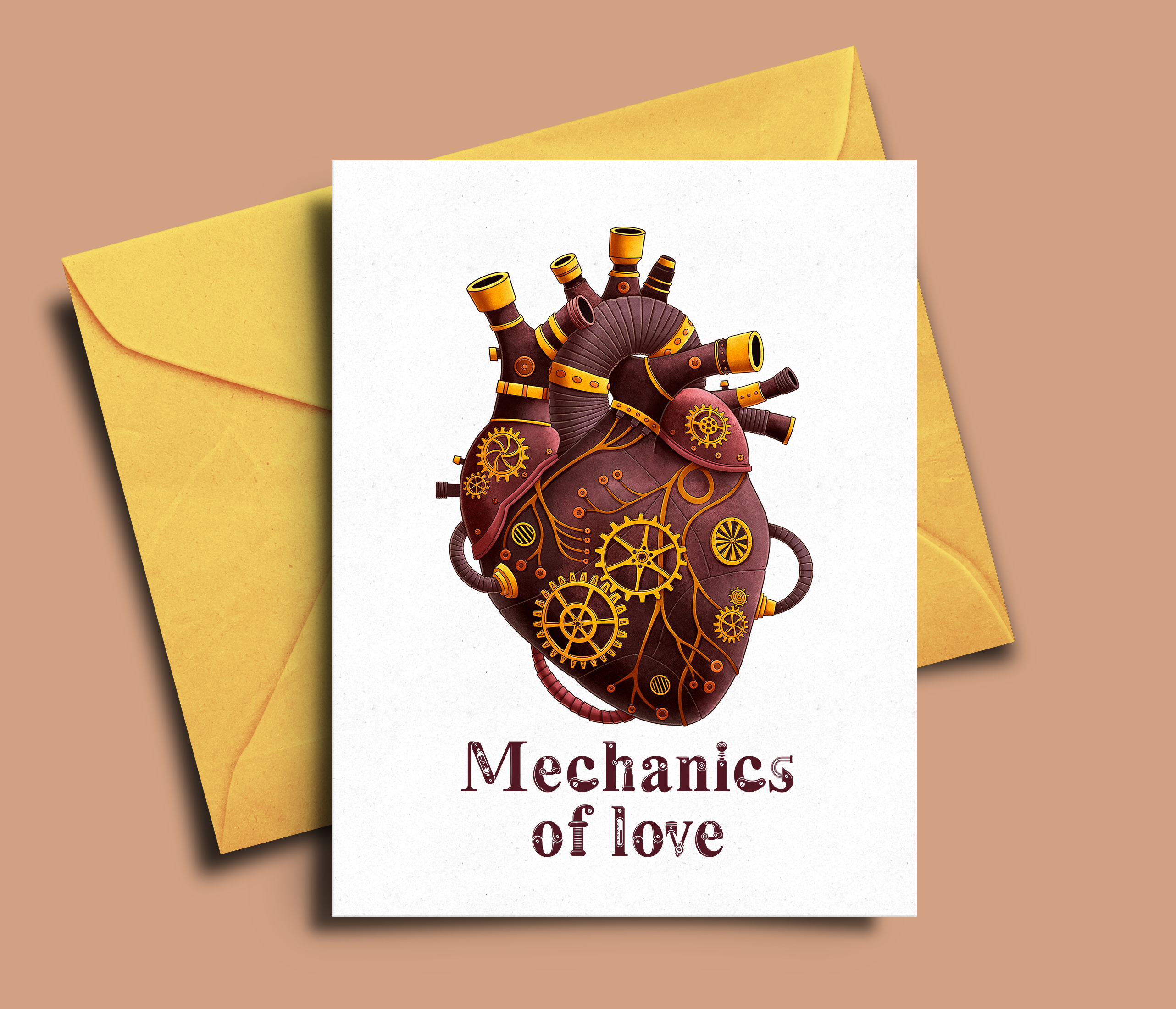 Открытка на День всех влюбленных с седцем в стиле стимпанк