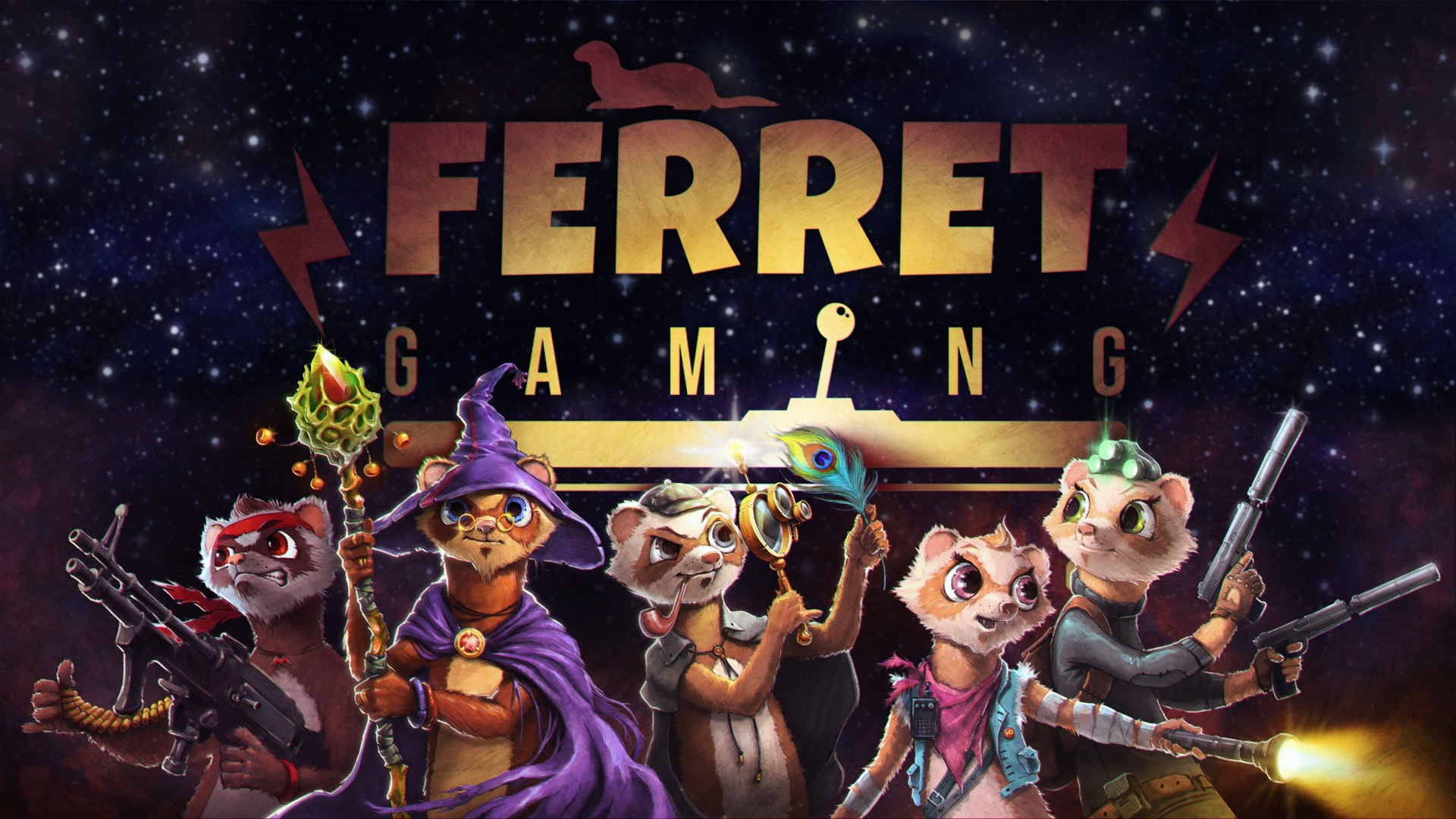 Обои для YouTube/VK летсплей канала Ferret Gaming/Хорячья семья. Разработка персонажей, логотип.