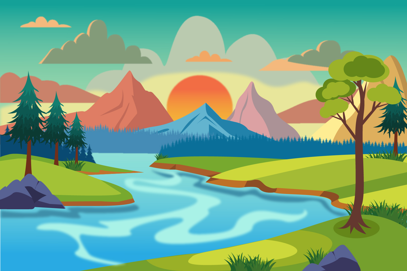Пейзаж отрисован в Adobe Illustrator
