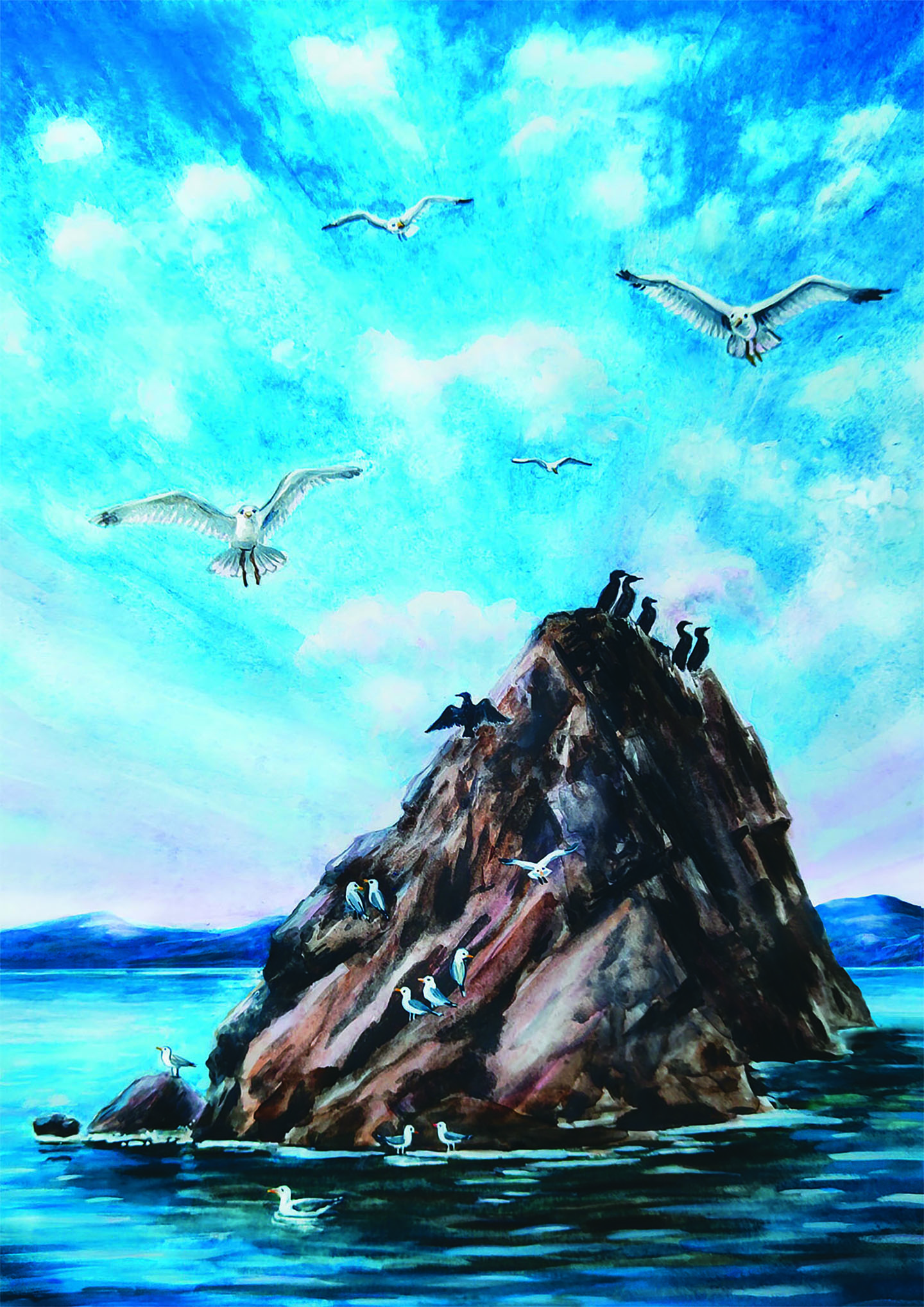 Иллюстрация к книге "Здравствуй, озеро Байкал!" Бакланий остров - один из памятников природы озера.