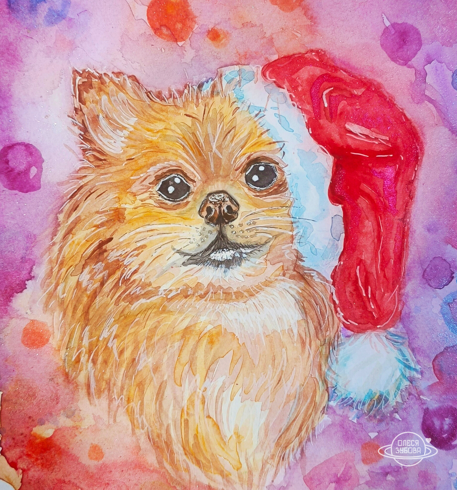 Скетч акварель новогодний шпиц
