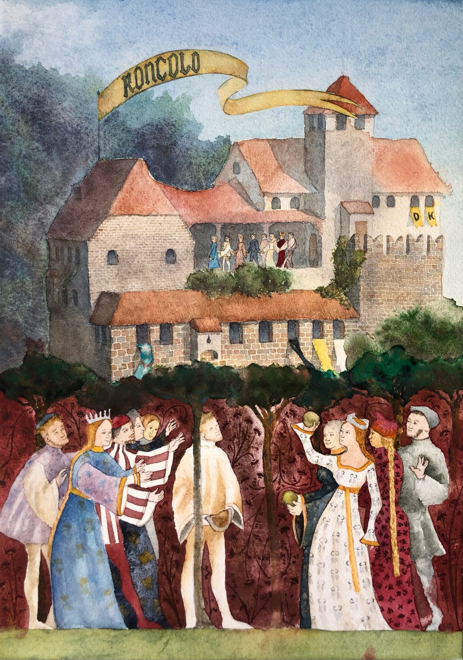 Эта работа вдохновлена замечательными средневековыми фресками, сохранившимися в замке Ронколо (в годы Австрийского владычества - Рункельштайн) до наших дней. Формы самого замка интерпретированы вольно, с намеренными искажениями перспективы, характерными для средневекового творчества.