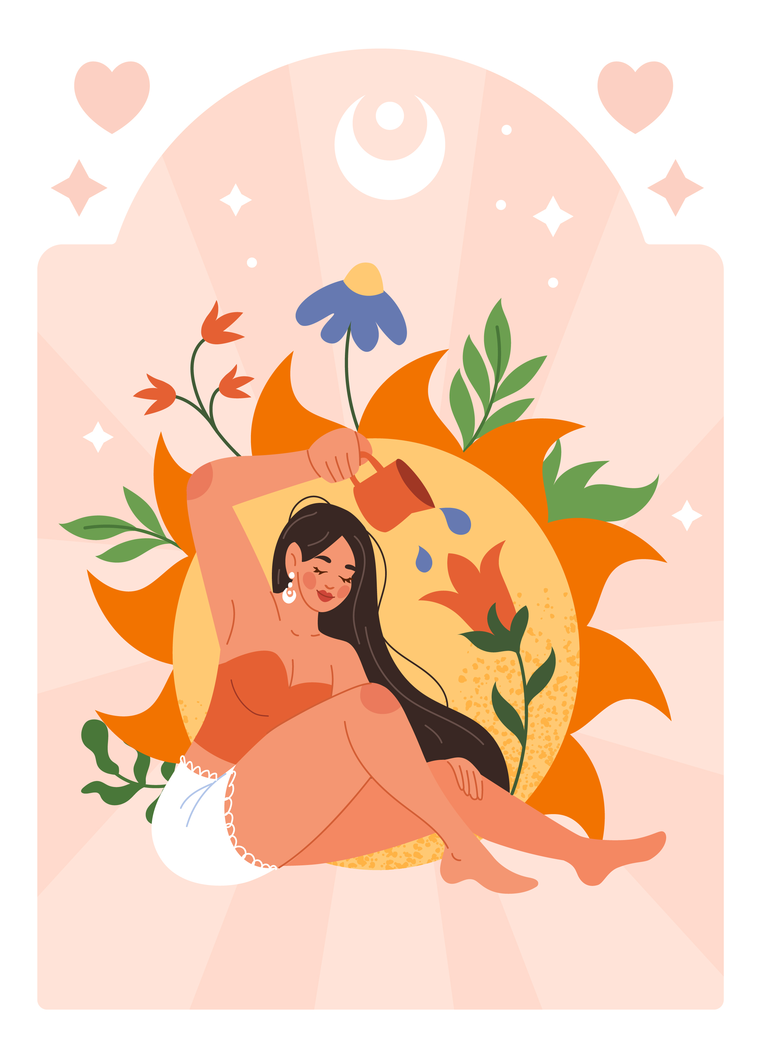 Иллюстрация о бережности к себе, внутреннем восстановлении и заботе, которая помогает расти.
