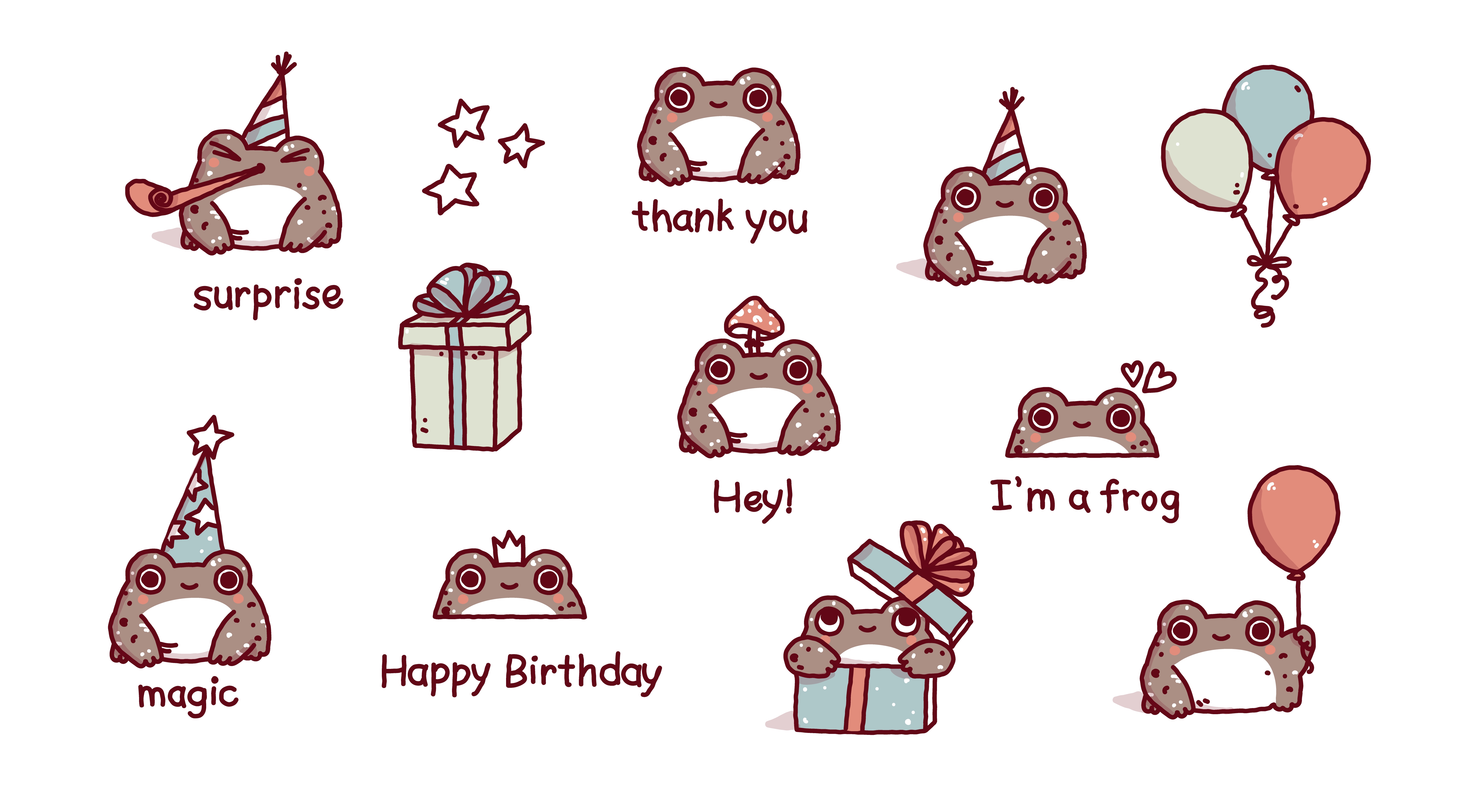 Забавные жабки стикеры для праздника