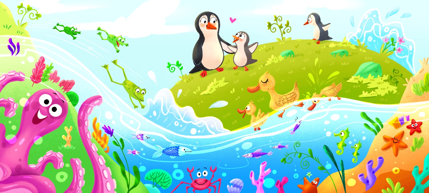 Иллюстрация для оформления стены в бассейне, специализирующемся на занятиях для мам и малышей