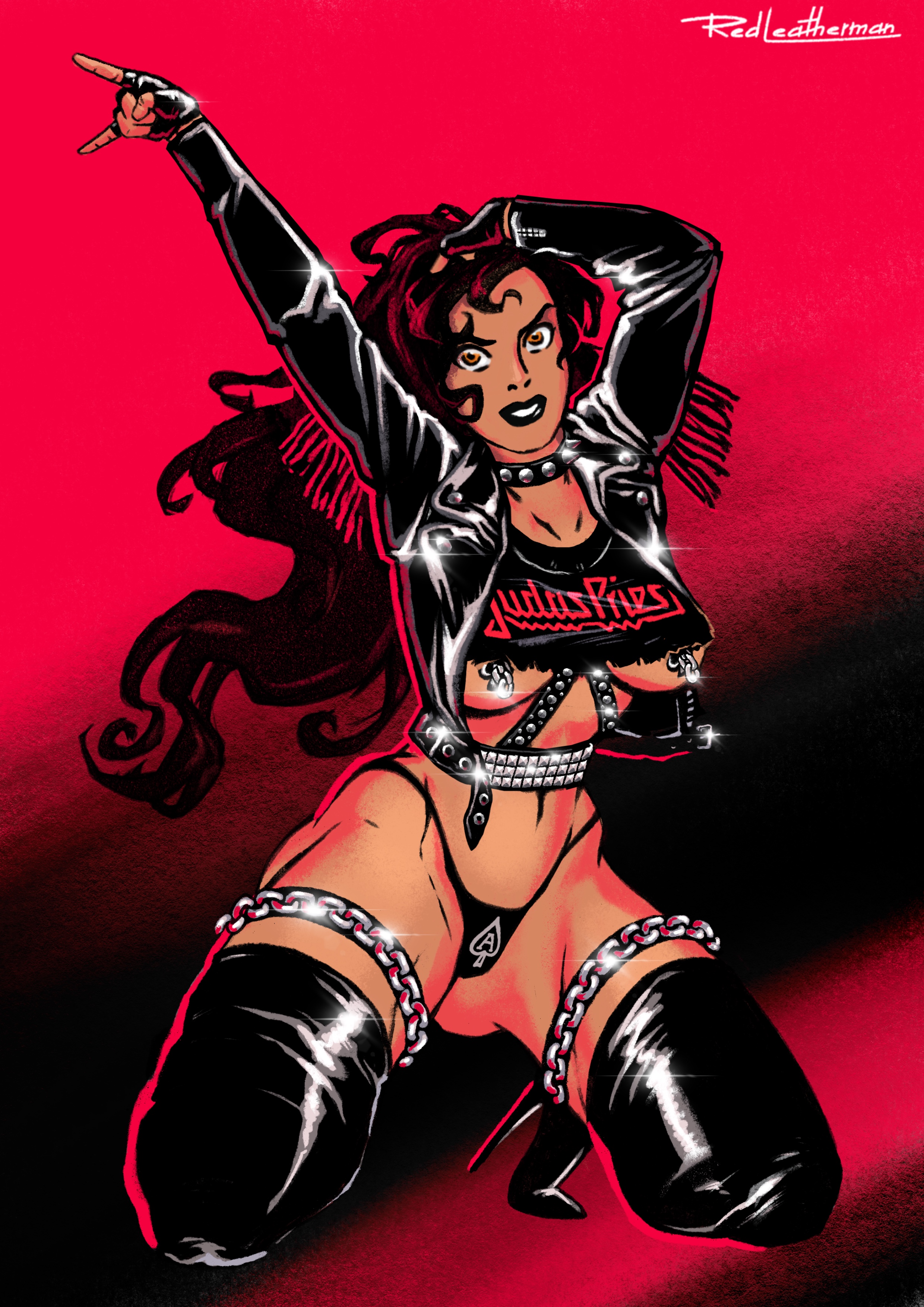 Пин-ап открытка из серии иллюстраций, посвящённых альбому "Turbo" группы Judas Priest. Каждая иллюстрация соответствует треку в альбоме.