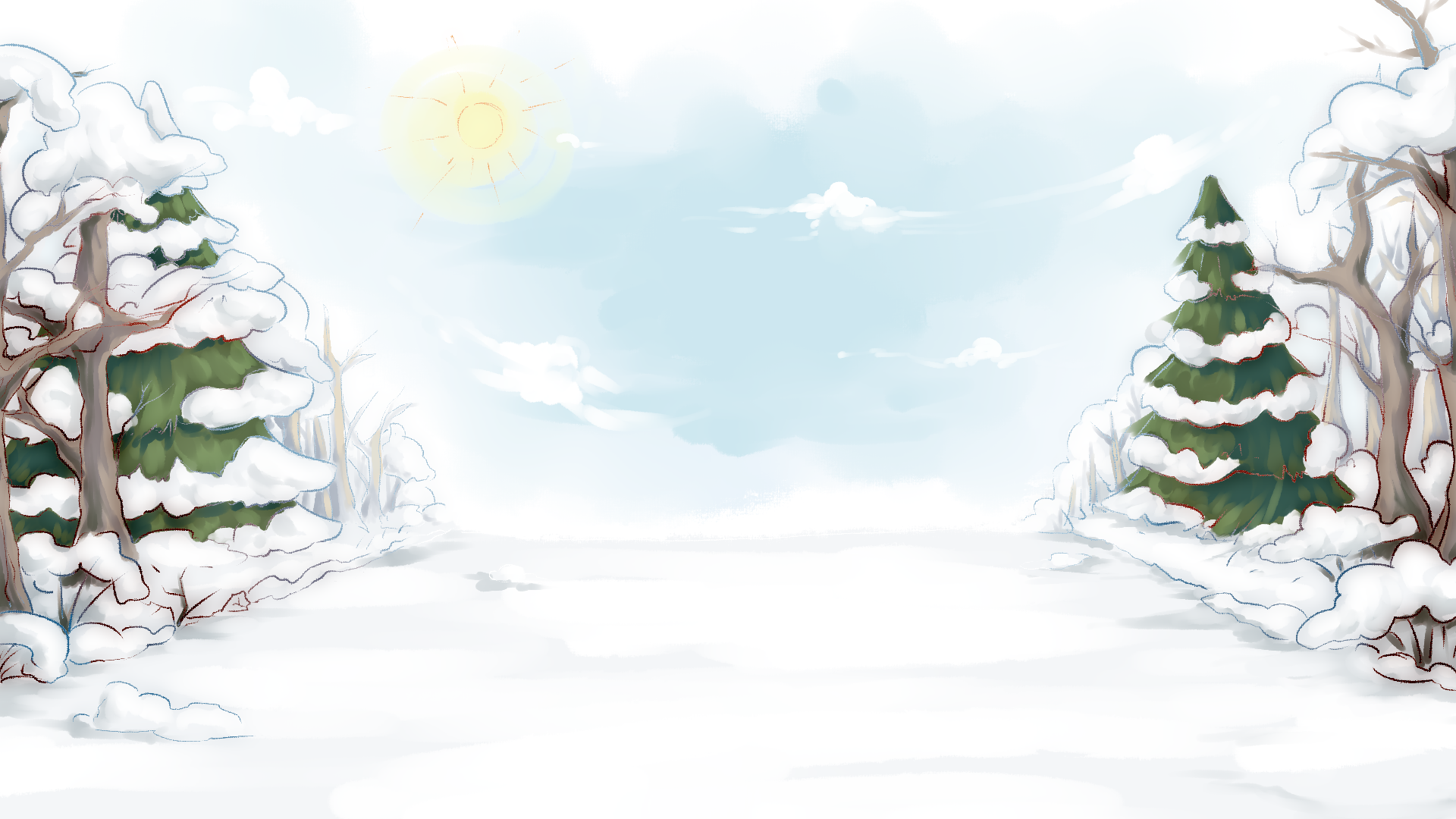 Иллюстрация заснеженной реки в лесу - была нарисована в целях создания футажа для мероприятия