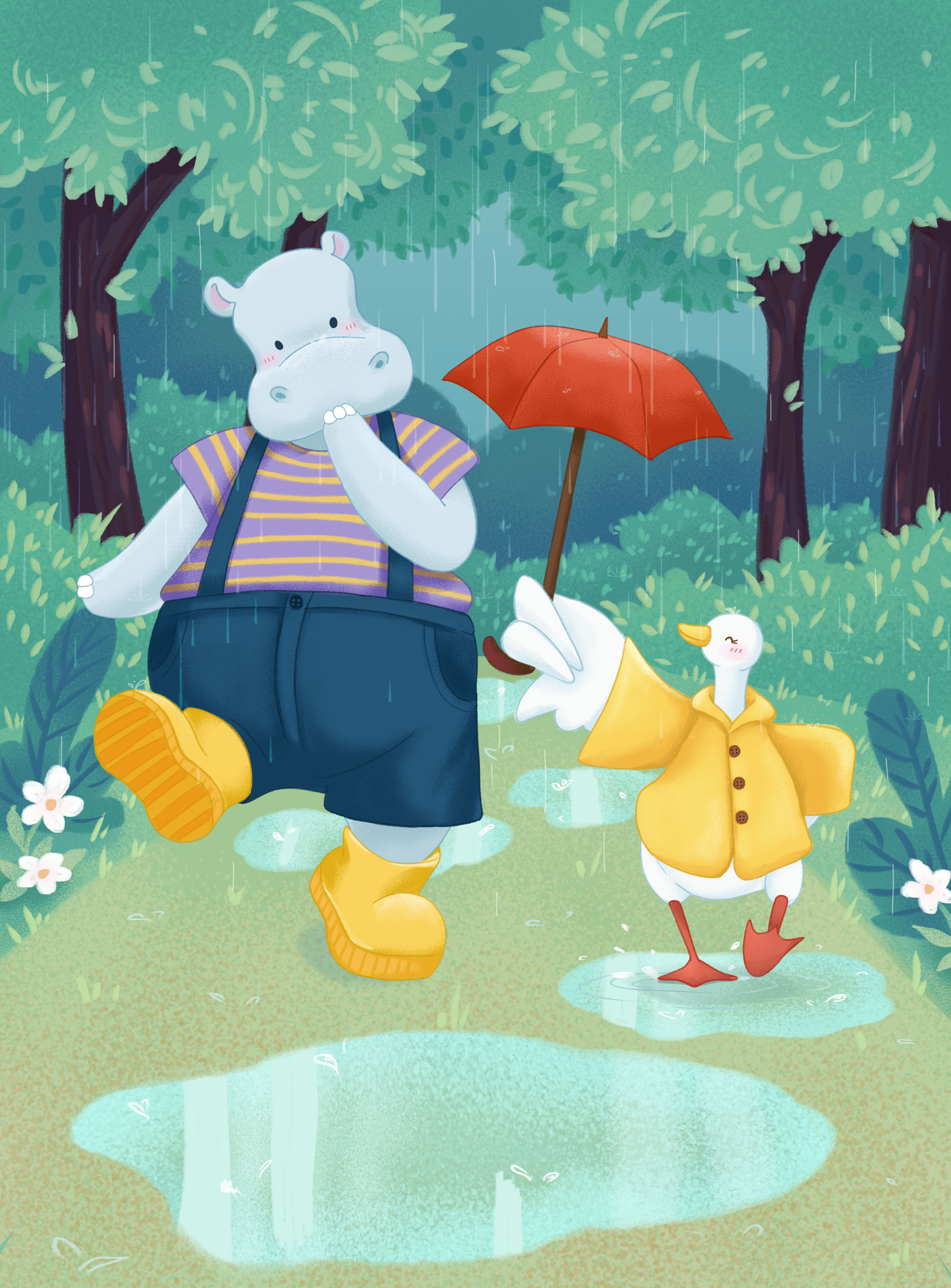 Иллюстрация по мотивам книги «Утя и Мотя. Прогулка под дождем» Джонатана Лондона