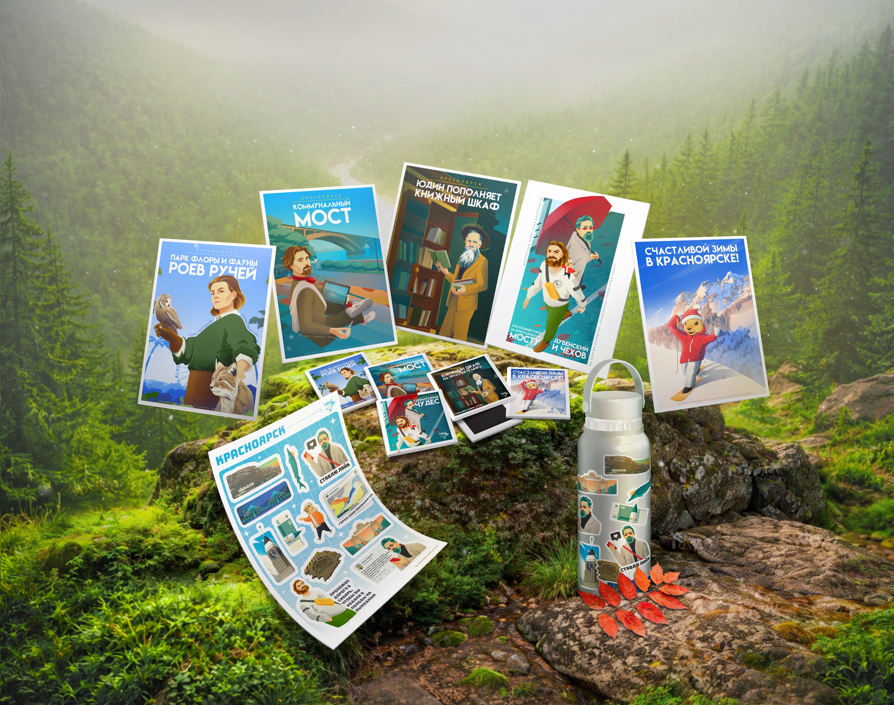 Иллюстрации для продукции для Туристического информационного центра Красноярска