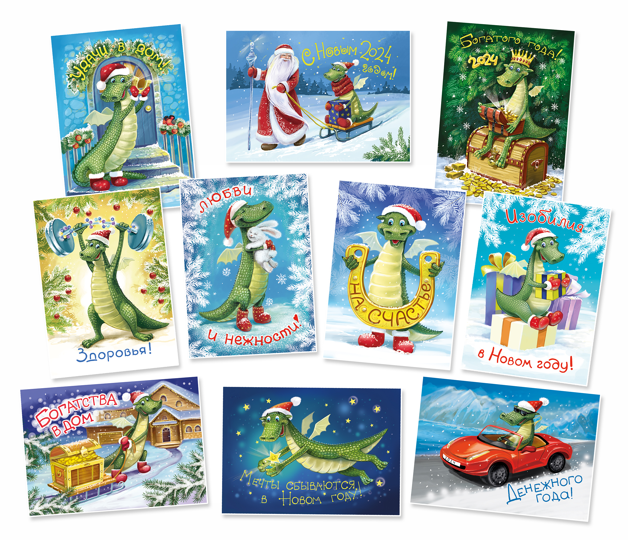 Серия новогодних открыток и магнитов с дракончиками.