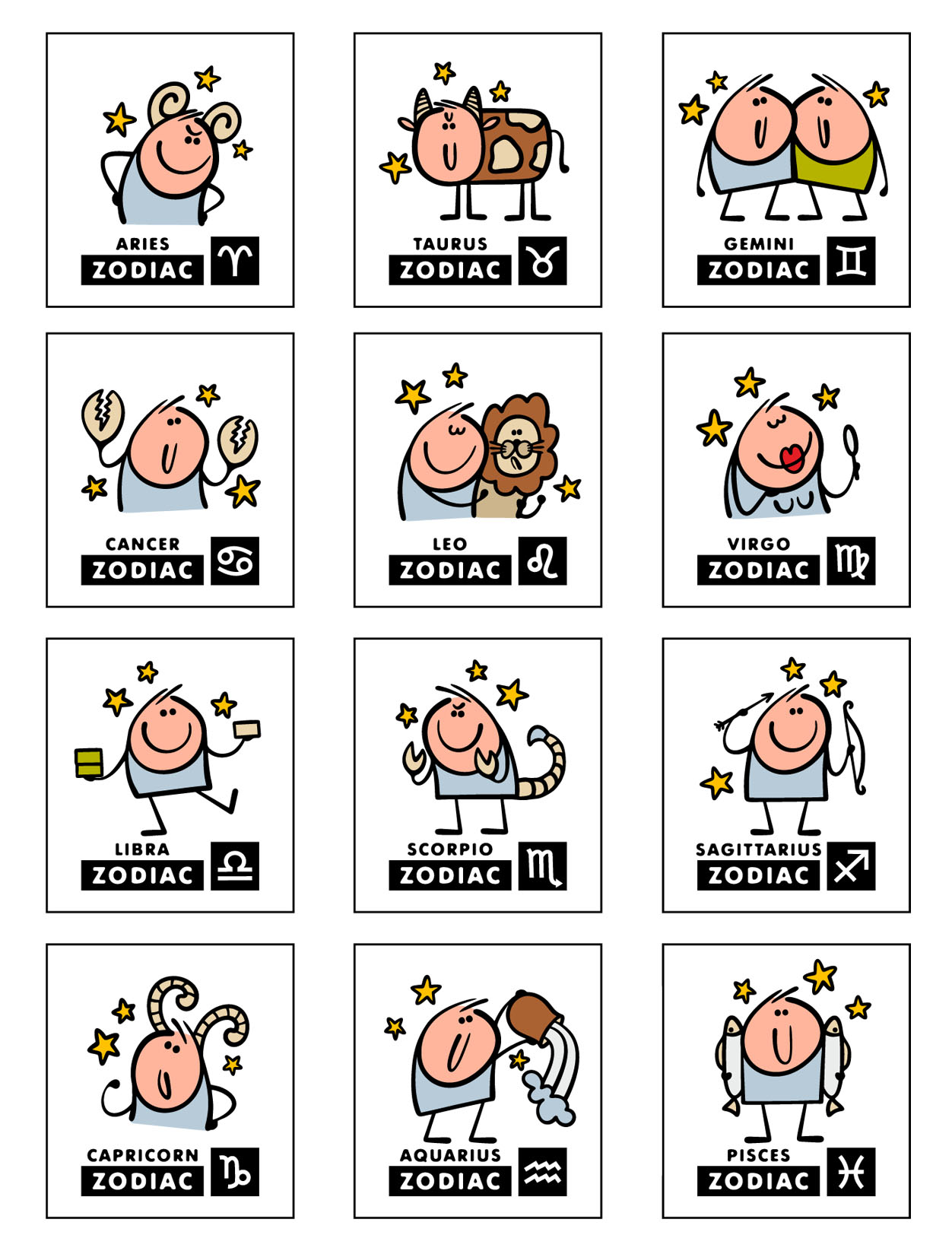 Карточки по знакам зодиака.