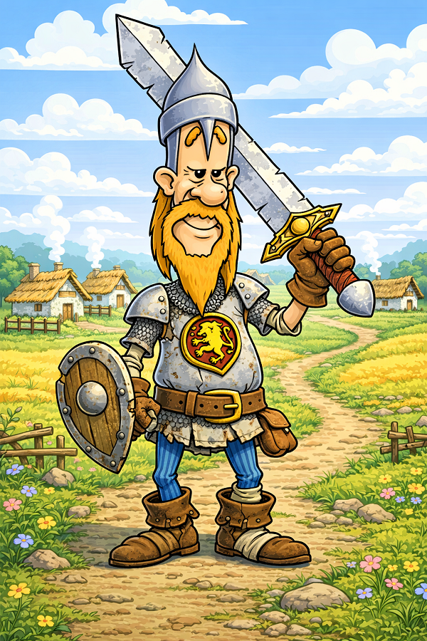 Продолжаю осваивать возможности ИИ. Ещё одна карандашная работа, представленная здесь, была раскрашена с его помощью. В этот раз я также попытался улучшить сам эскиз: доработал меч, щит и пояс, а также добавил мелкие детали с помощью ChatGPT.