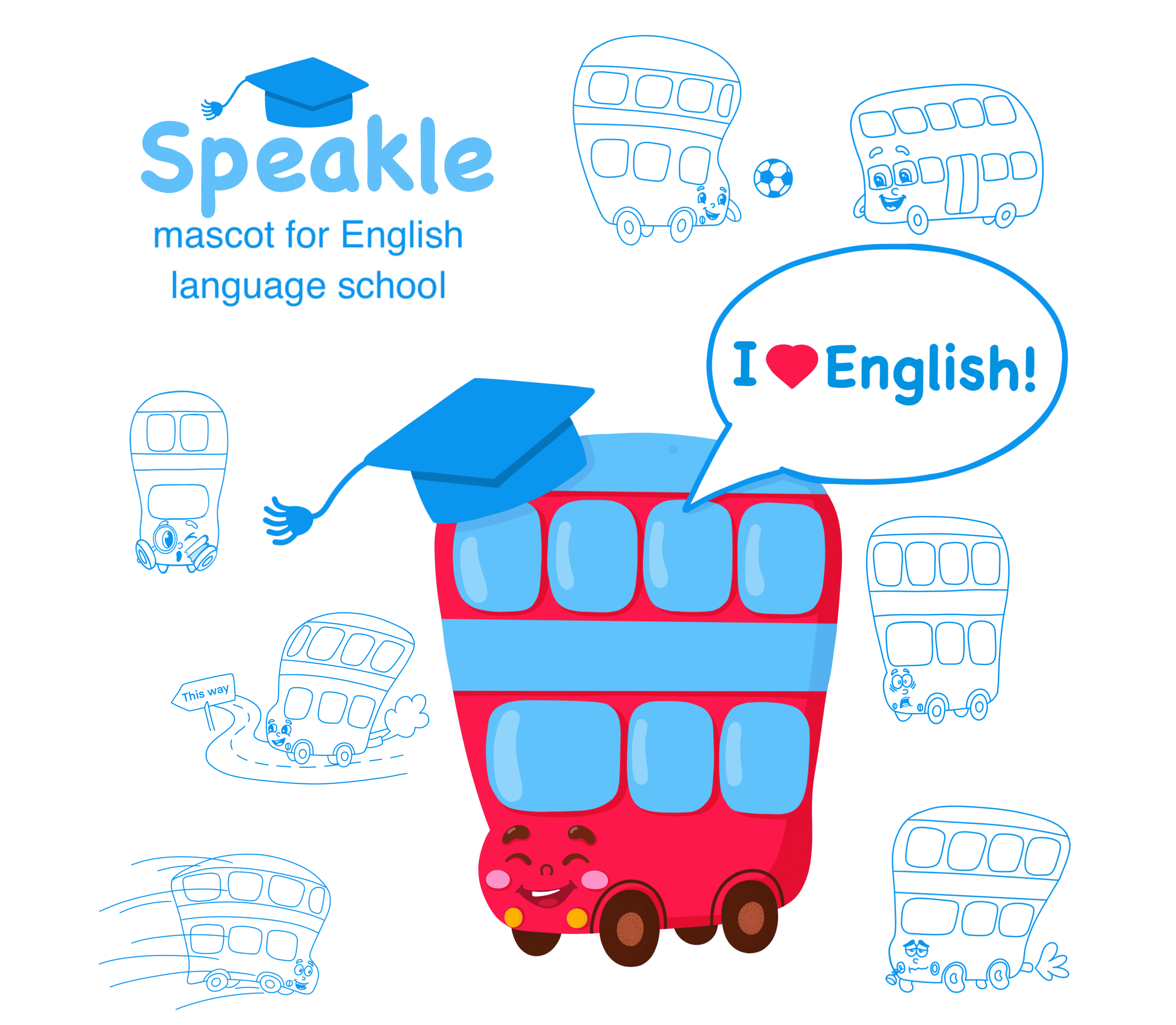 Бренд персонаж для школы английского языка — маленький красный автобус. Малыш - автобус используется на рекламных флаерах, баннерах, стикерах, классах для обучения, а также в социальных сетях. Он помогает детям с интересом и удовольствием изучать английский язык.