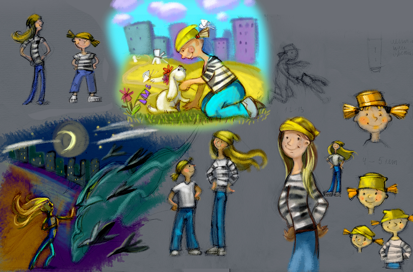 разработка персонажа девочка - фломастер