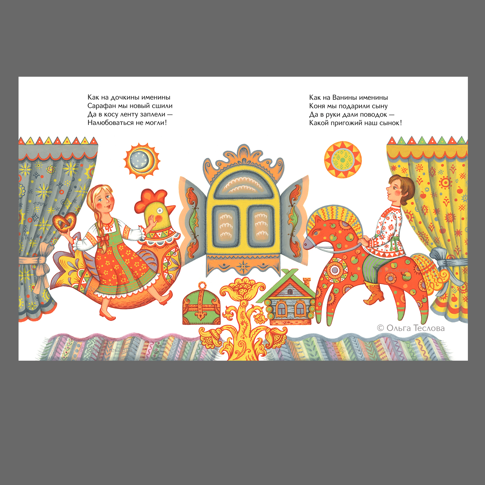 Разворот из авторской книжки потешек "Пошла коза на ярмарку"