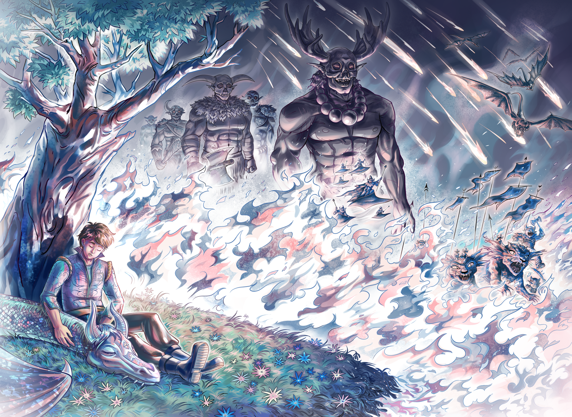 Классная работа!) Очень выразительные образы воинов на заднем плане и необычное сочетание цветов👍