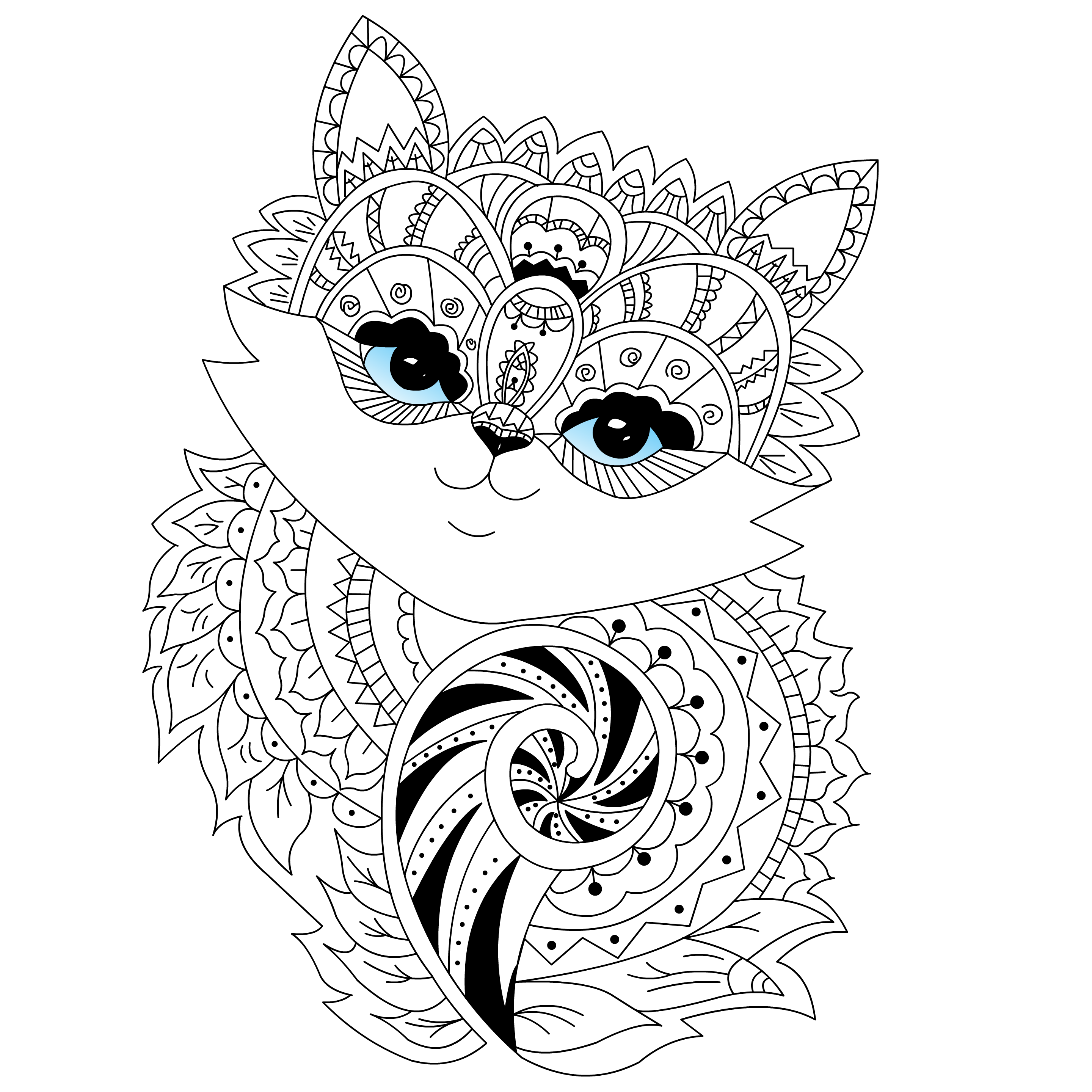 Illustration for coloring. a little kitten with a fluffy tail