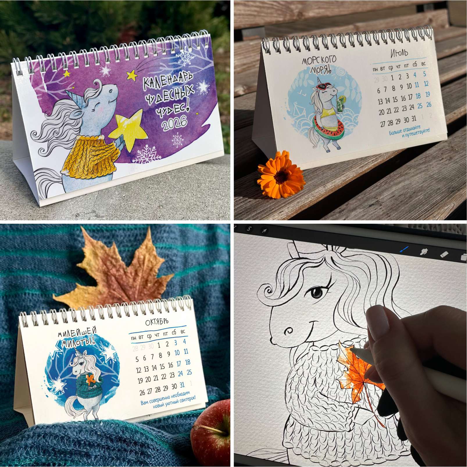 "Wonderful Wonders Calendar 2026" with cute unicorns