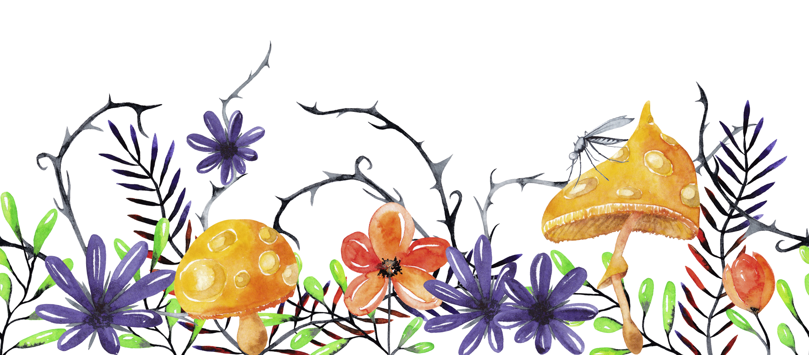fantastic plants and flowers in seamless botanical horror border. digital illustration for print. handpainted watercolor.