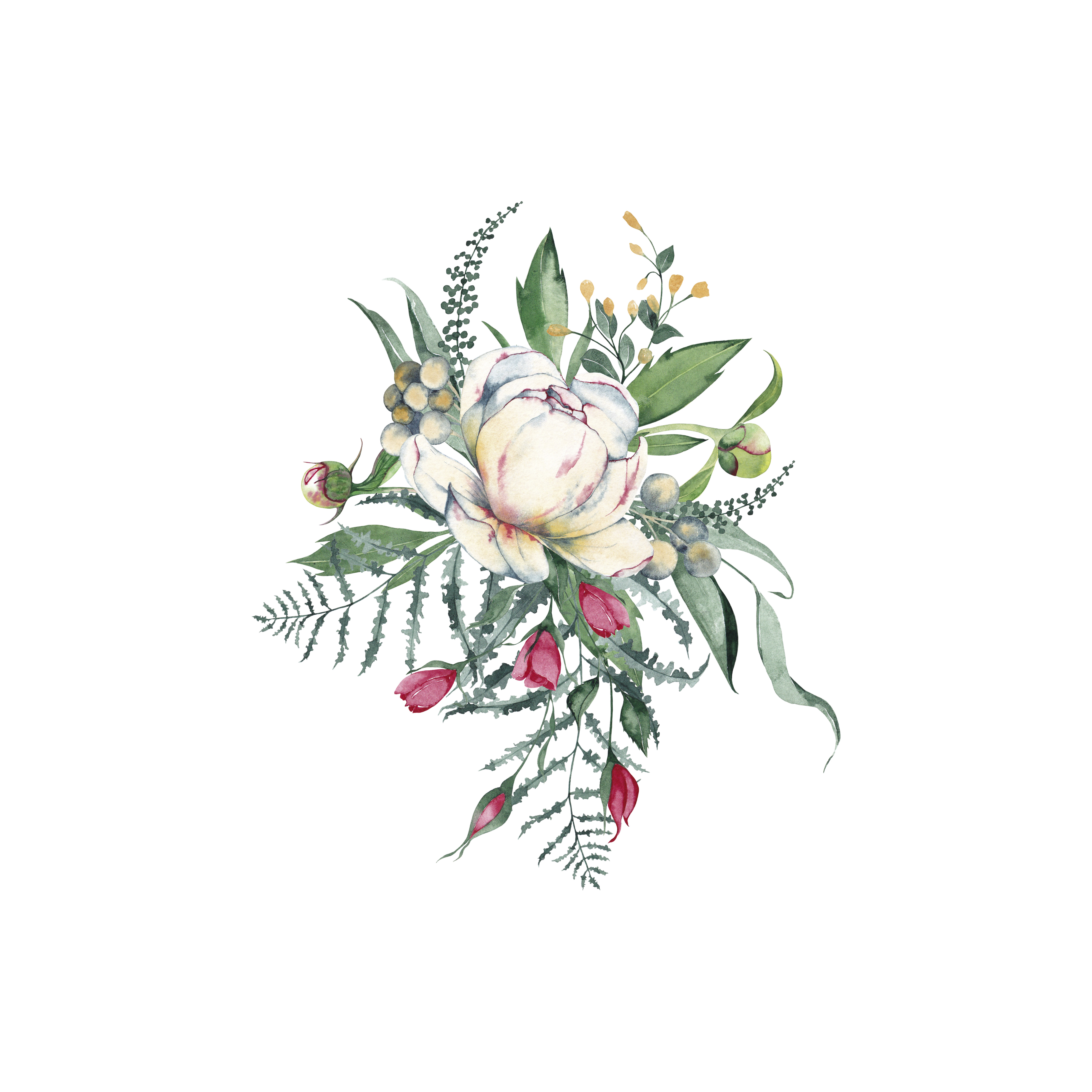 Peon and wildroses Wedding floral illustration