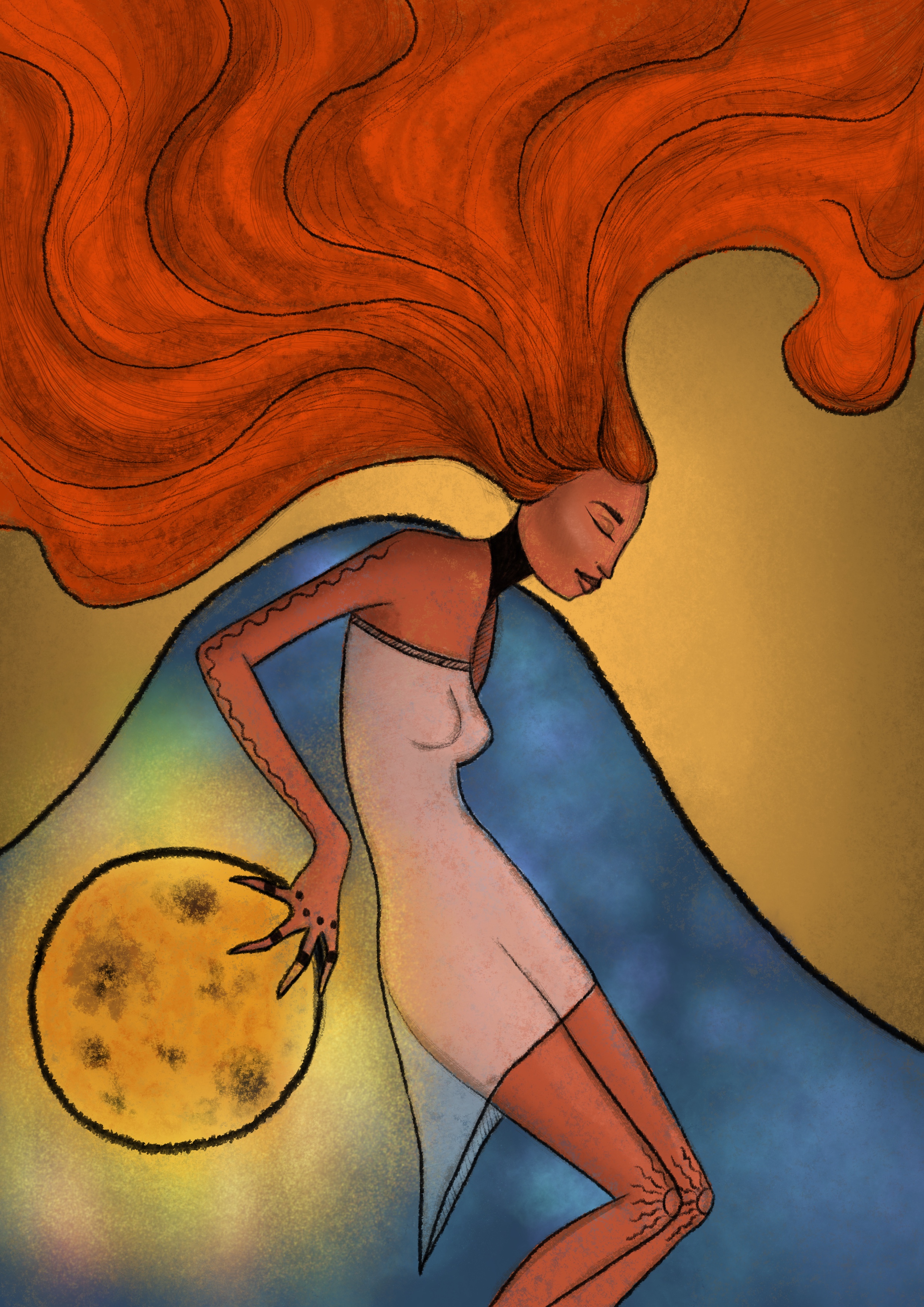 В данном рисунке изображена женщина, которая владеет солнцем. Это некое подобие богу солнца в