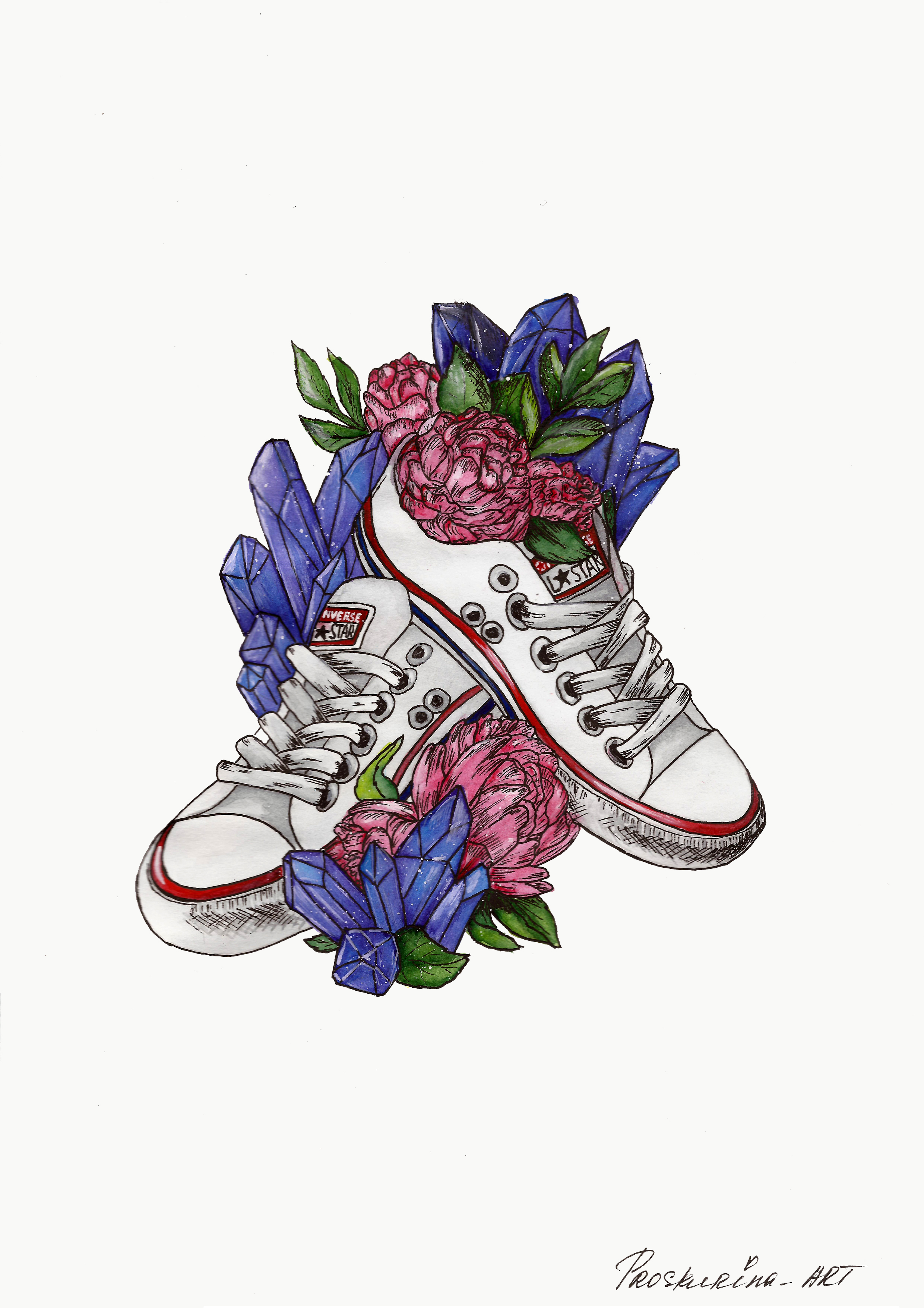 Яркая иллюстрация с цветущими кедами. Готова к печати. Подойдет для печати в качестве принта для одежды, открыток, домашнего текстиля и сувенирной продукции