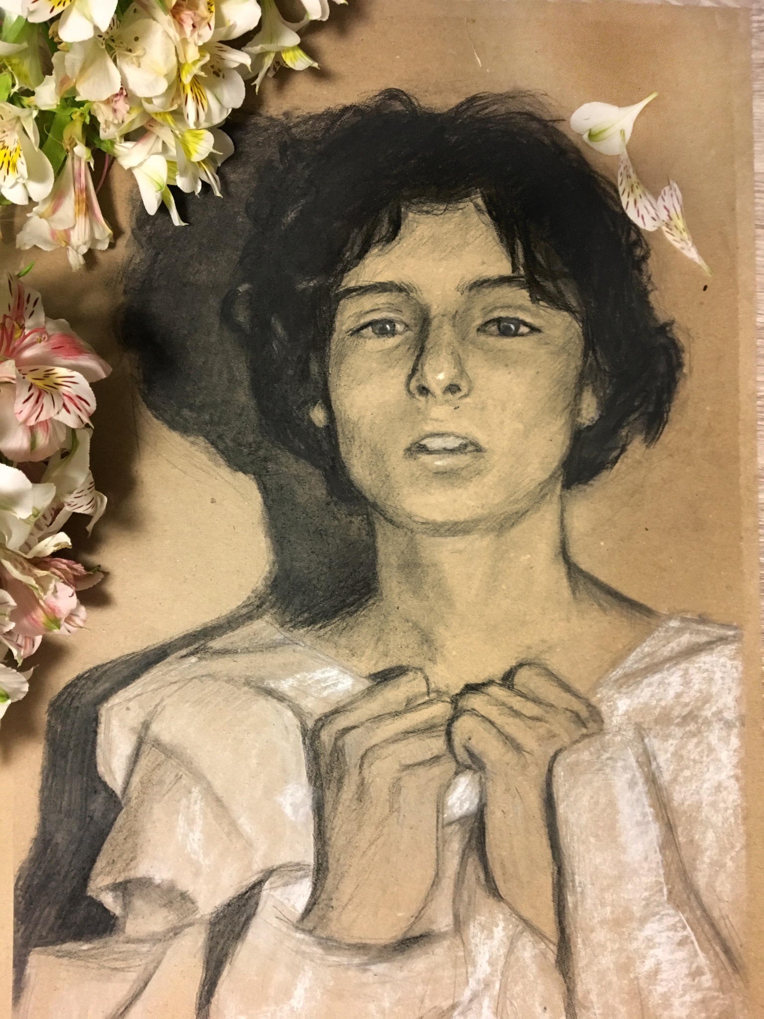 Размер 41х61, выполнено углём и мелом на плотной крафтовой бумаге. Портрет актера и музыканта - Финна Вулфарда из очень странных дел и др. фильмов и сериалов.