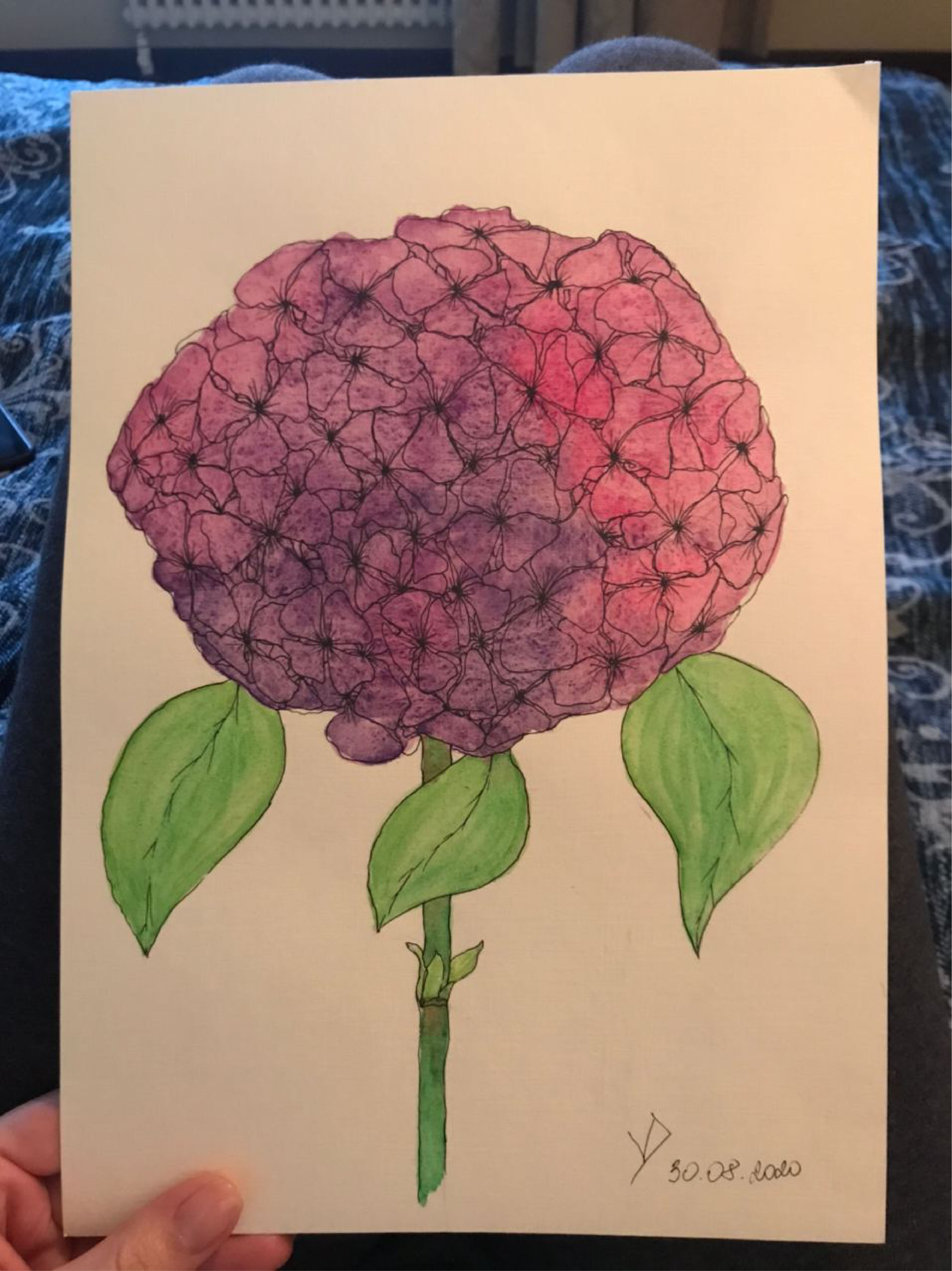 Тёплая акварельная иллюстрация удивительного цветка - гортензии. Могу выполнить в любых цветах и размерах и отправить вам оригинал или качественный скан, обработанный для печати или экранов.