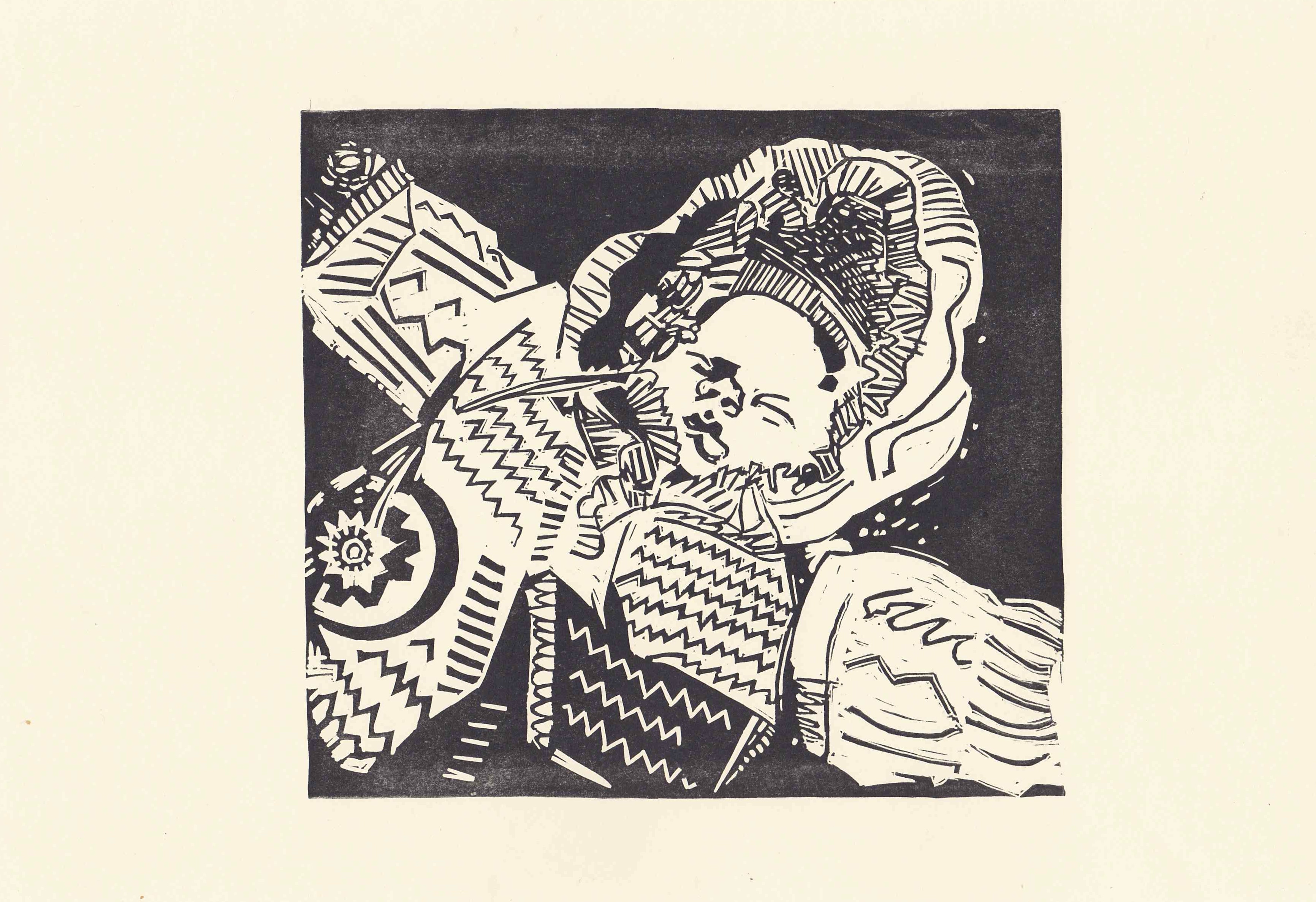 Линогравюра, ручная печать типографской краской на плотной бумаге А4. Спящий младенец в зимнем комбинезоне с орнаментом. Возможна печать оттиска другим цветом.