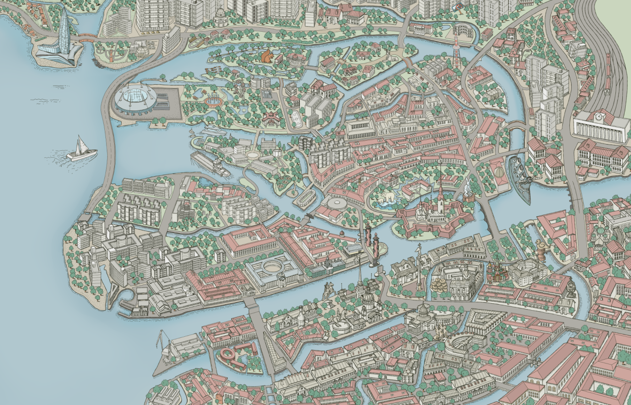 Карта Санкт-Петербурга в высоком разрешении 15000 пикселей. Подходит для печати на А1-А0. При необходимости поменяю цвета и дорисую значимые для вас места на карте, надписи, логотипы.