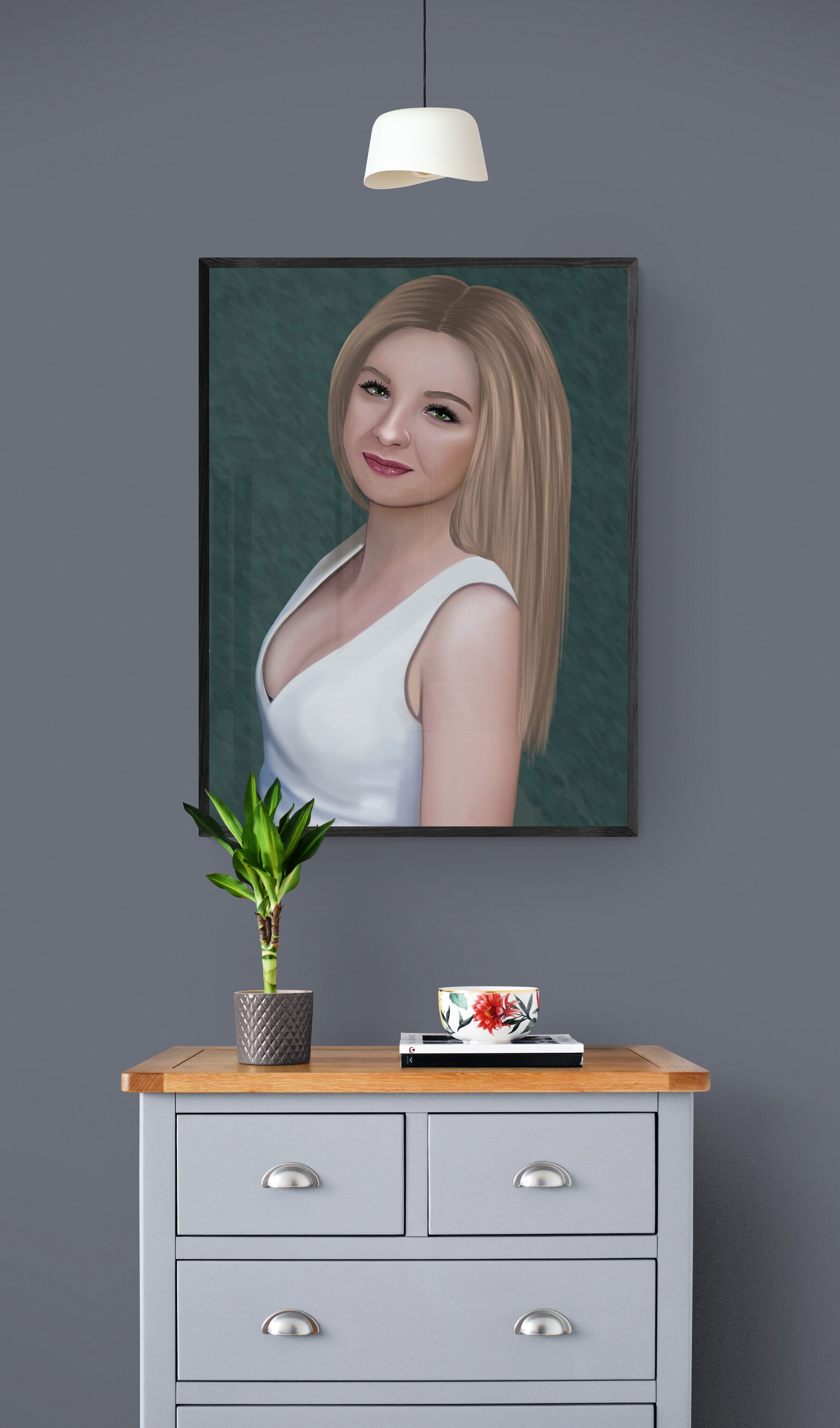 Планшет позволяет сделать файл, который заказчик сможет напечатать даже на настоящем холсте любого размера и повесить как картину в спальне или гостиной.