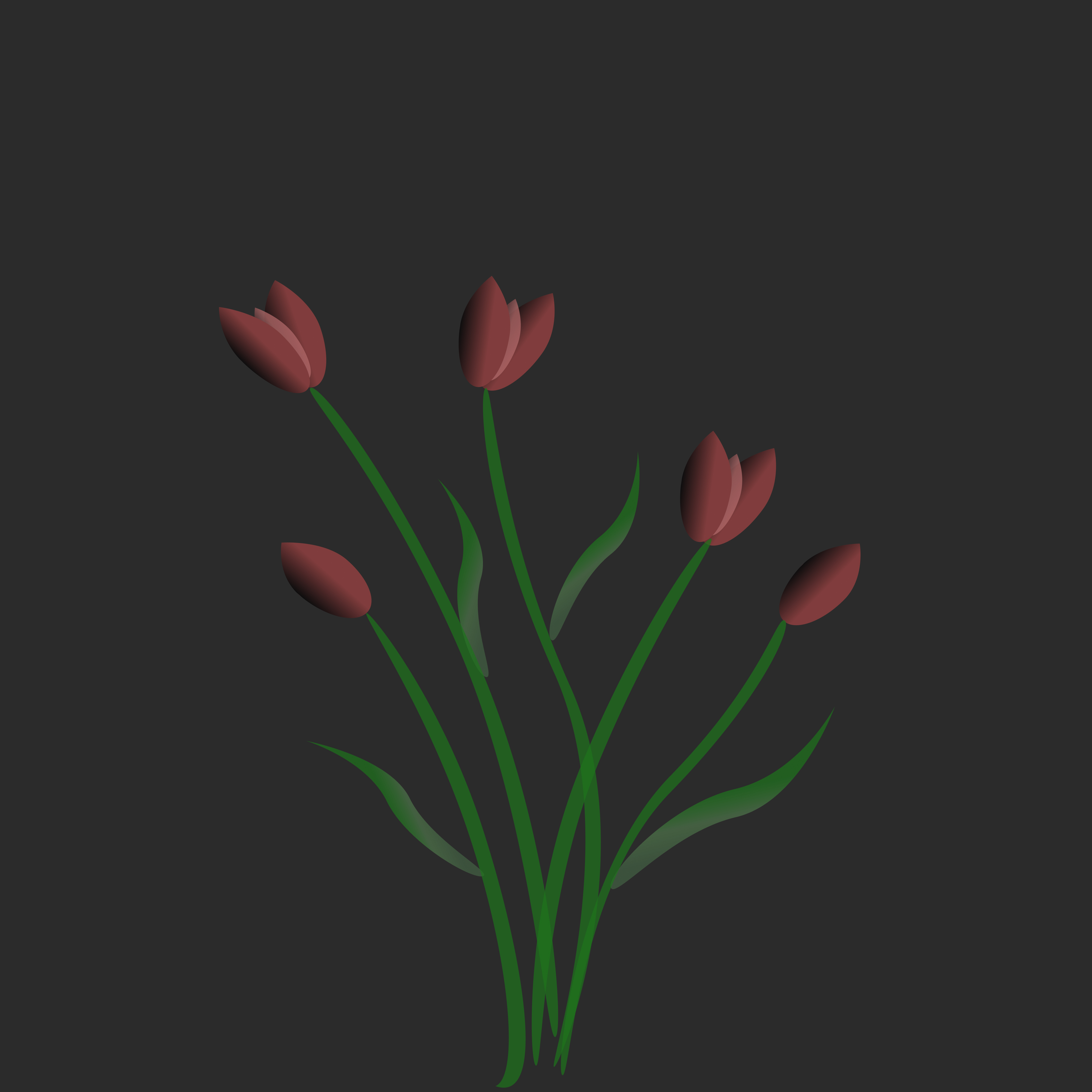 Бордовый букет тюльпанов 5 цветов с листьями , на сером фоне, к празднику, день рождения, любимому человеку подарок. Цветочный красивый букет