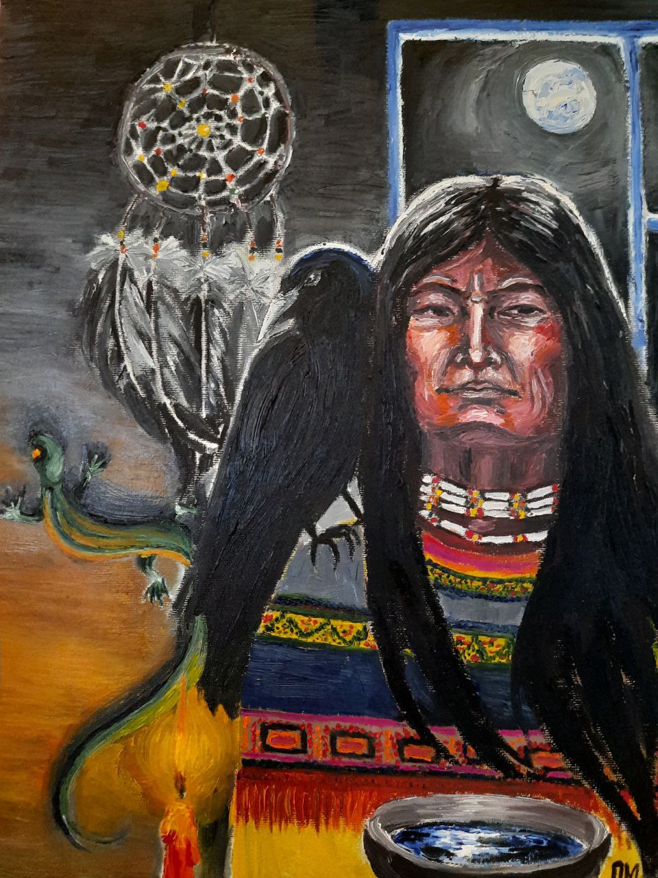 Магическая картина "Шаман", холст на картоне, масло, не оформлена, оформлю при желании. Навеяно прочтением книг Карлоса Кастанеды. Работа не обычная, не бабочки-цветочки и не каждый поймет.